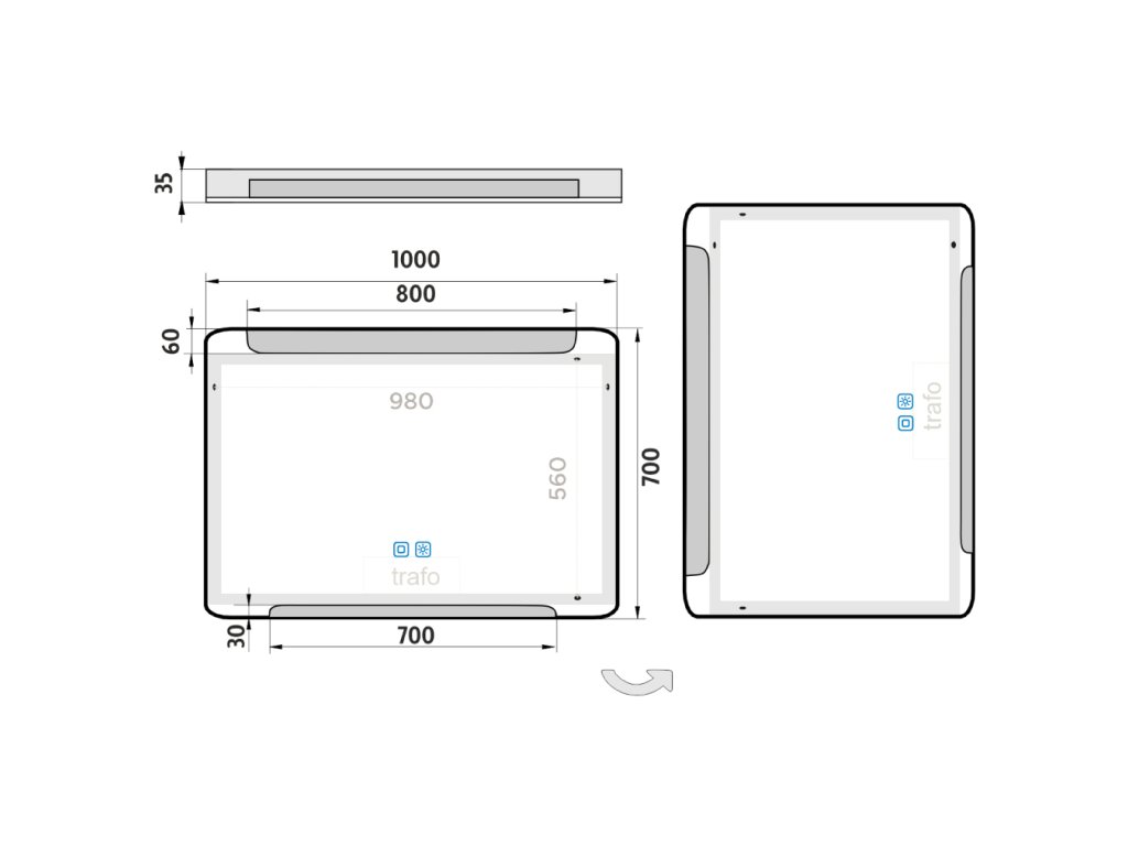 LED zrcadlo 1000x700 se dvěma dotykovými senzory