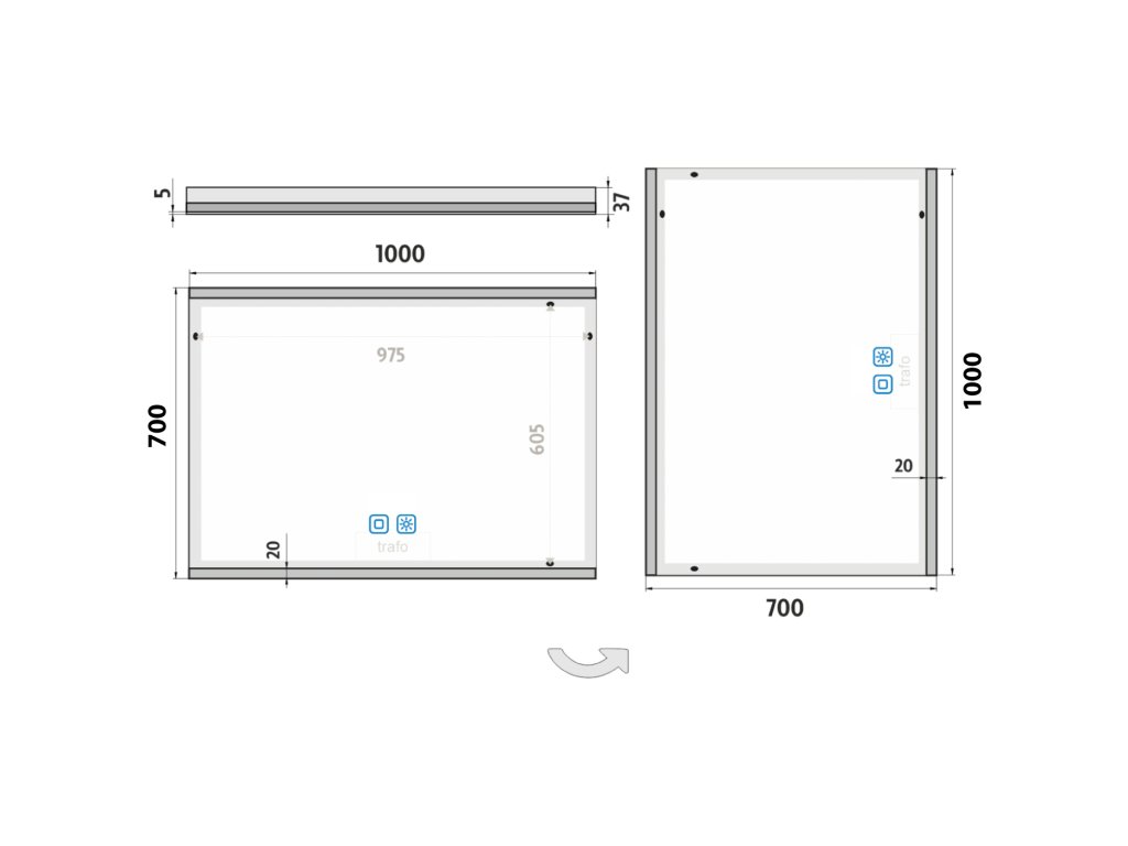 LED zrcadlo 1000x700 se dvěma dotykovými senzory