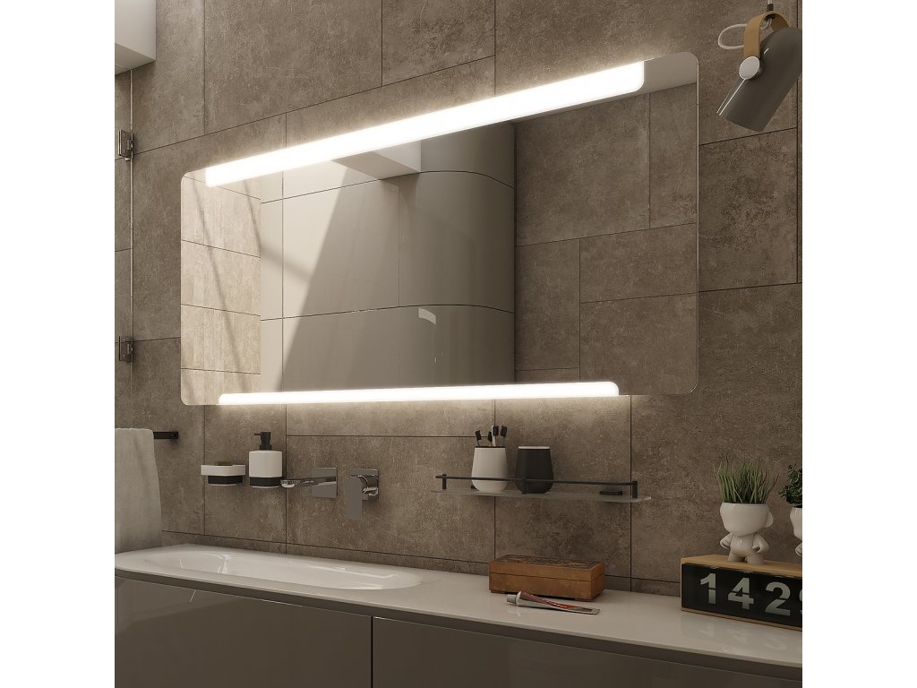 Velké zrcadlo do koupelny 140x70 s osvětlením nahoře a dole je skvělým doplňkem do koupelny. Koupelnové LED zrcadlo NIMCO s horním a dolním osvětlením. Zrcadlo je díky své velikosti vhodné do větší koupelny nebo do koupelny se dvěma umyvadly umístěnými vedle sebe. Nová technologie svícení za použití akrylátového skla plexiglass. Konstrukce je z hliníkového rámu 32x19 mm, sklo zrcadla o tloušťce 5 mm. Zrcadlo lze uchytit horizontálně i vertikálně. Připojení 220-240 V. Ochrana IP 44. Bez vypínače. Zapojení do el. rozvodu a zapínání přes vypínač světel v místnosti. LED čipy s vysokým výkonem. Barevná Teplota denní bílá – jasné polední světlo. Životnost LED diod je až 50 000 hodin. Ochrana LED diod před vlhkostí a vylepšený rozptyl světla díky plexiglass Horizontální i vertikální uchycení zrcadla Zrcadlo s oblými rohy Životnost LED diod až 50 000 hodin svícení Odstín svícení - denní bílé světlo 6500 K Výkon 34,5 W Tok světla 2 484 lumen Sklo zrcadla 5 mm silné Rozměr 140 x 70 cm Podsvícené koupelnové LED zrcadlo Životnost diod až 50 000 hodin Příkon 34,5 W Barevná teplota 6500 K 2484 LumenDodatočné parametre
