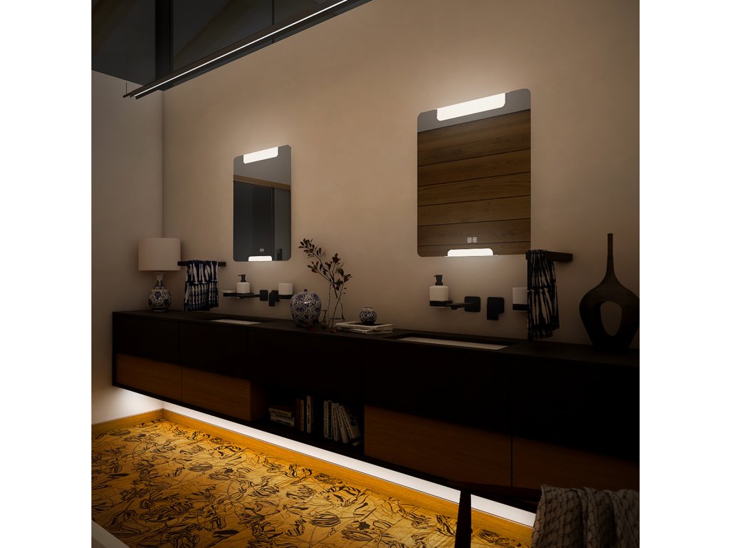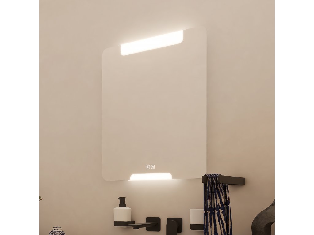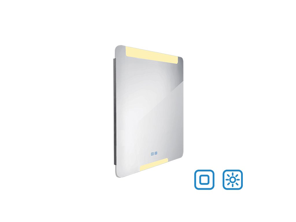 Zrcadlo do koupelny 60x80 cm s osvětlením nahoře a dole, dotykový spínač je skvělým doplňkem do koupelny. Zrcadla do koupelny NIMCO vynikají kvalitním zpracováním a moderním designem. Svícení za použití akrylátového skla plexiglass. Konstrukce je z hliníkového rámu 32x19 mm, sklo zrcadla o tloušťce 5 mm. Připojení 220-240 V. Zapínání / vypínání / ovládání dotykovým senzorem s pamětí. Možnost nastavení barevné teploty svícení a intenzity svítivosti. Životnost LED diod je až 50 000 hodin. Ochrana IP 44. Koupelnové podsvícené LED zrcadlo Životnost diod až 50 000 hodin Příkon 10,5 W Možnost nastavení barevné teploty od 3000 - 6500 K Možnost nastavení intenzity svítivosti Zrcadlo má paměť, pamatuje si poslední nastavené hodnoty První možnost připojení přímo do elektrického obvodu Druhá možnost zapojení zrcadla na klasický kolébkový vypínač v koupelně podobně jako i jiná svítidla 756 LumenDodatočné parametre