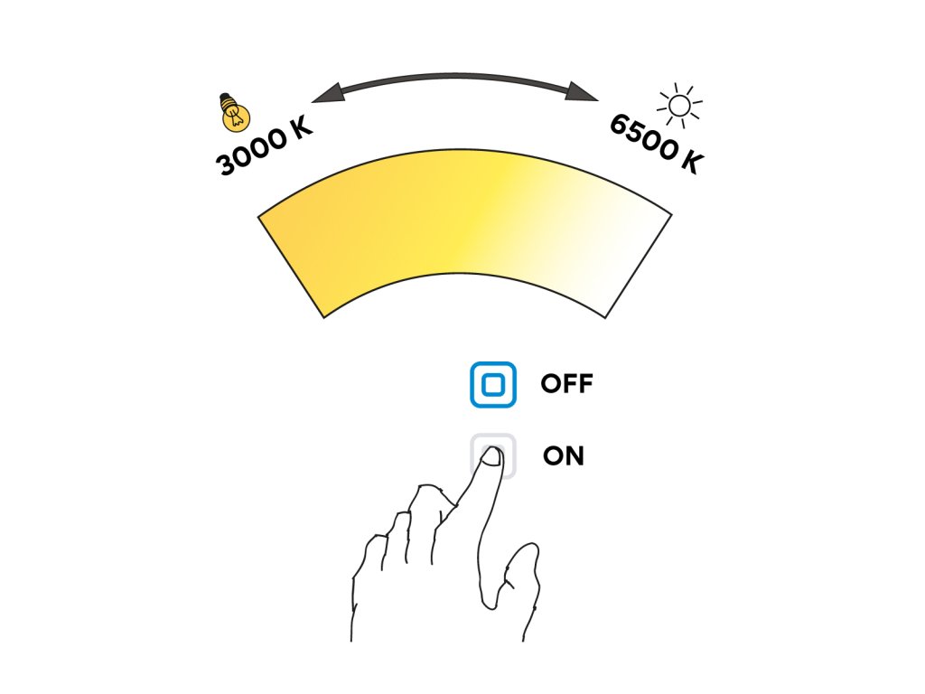 | Ovládání zrcadla: | Nastavitelná teplota barvy bílého světla |
