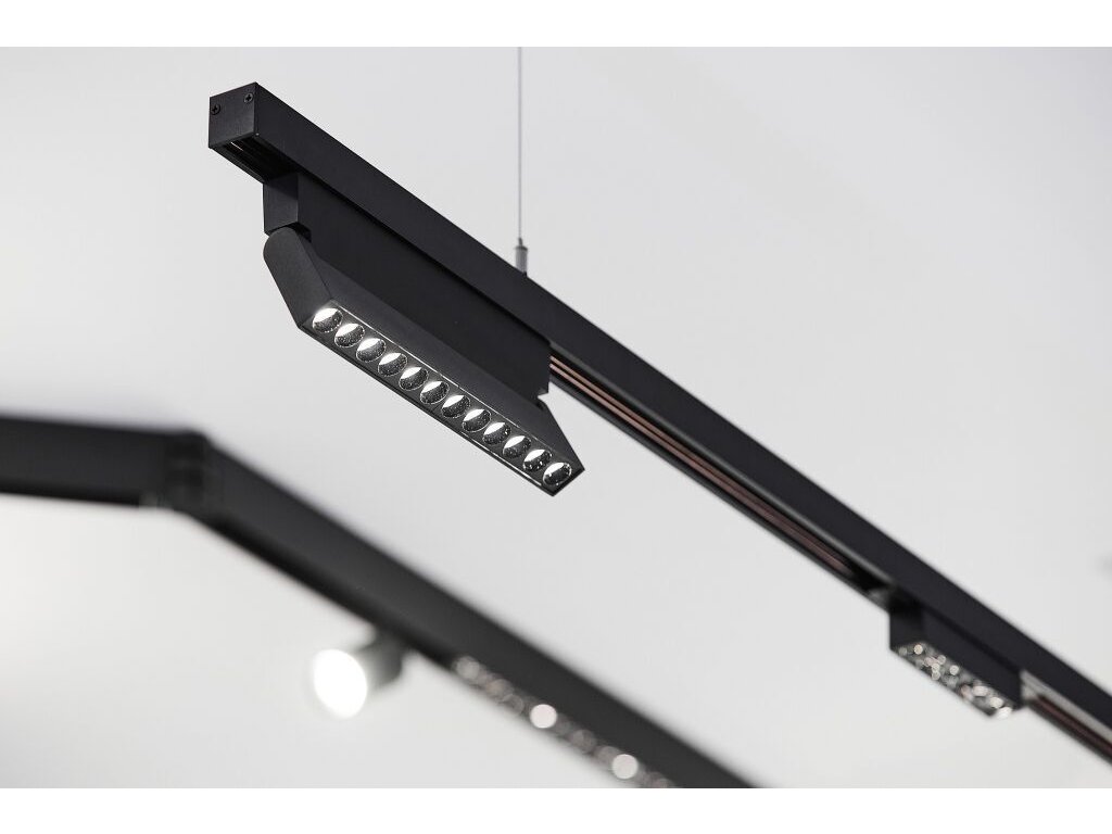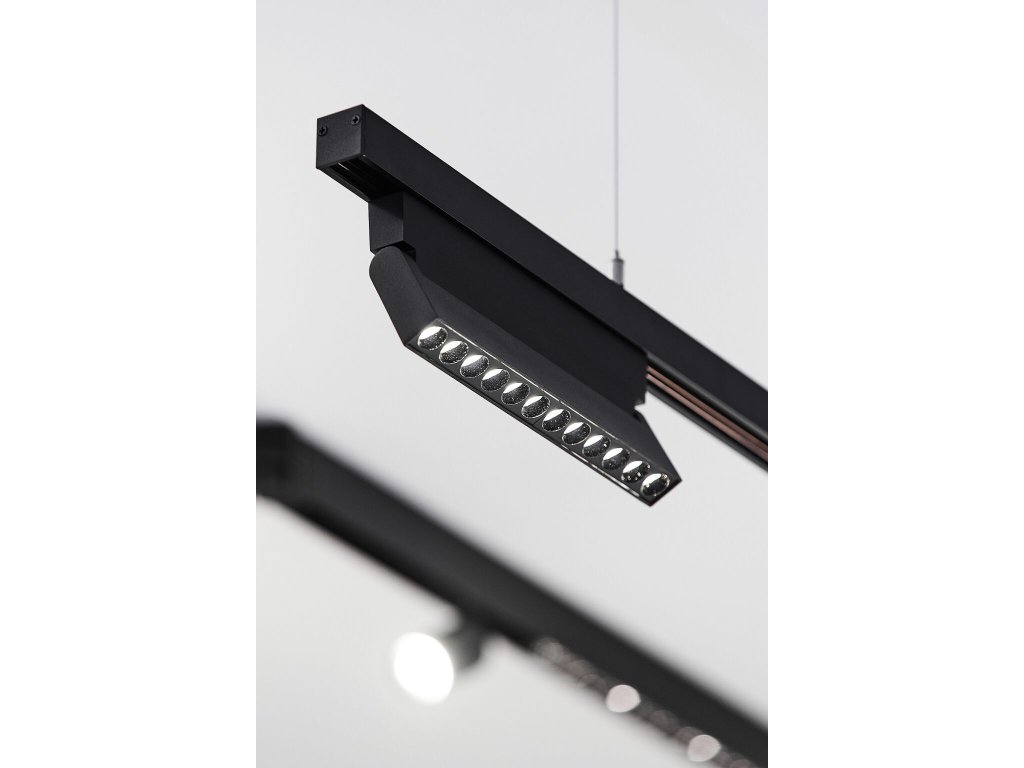 LED lineárne svietidlo na magnetickú lištu 48V, typu ICALL. Vyžarovací uhol je 40 °. Vyrobené z kvalitného hliníka v čiernej farbe. Hodnota CRI > 90. Svietidlo je možné naklápať a tiež stmievať.