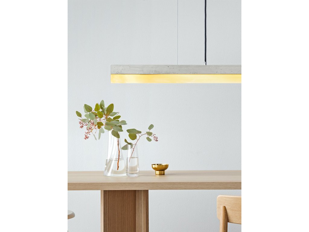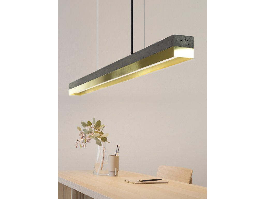 Vďaka svojmu minimalistickému dizajnu a vysoko kontrastným materiálom je možné dizajnové svietidlo prispôsobiť akémukoľvek štýlu zariadenia. Ručne vyrobené tienidlo je dodávané pripravené na inštaláciu s kvalitným LED pásikom, textilným káblom, závesom z drôteného lana, upevňovacím materiálom a matným oceľovým vrchlíkom. Textilný kábel a záves z oceľového lana je možné skrátiť na požadovanú dĺžku. Svetelný zdroj nie je vo svietidle trvalo inštalovaný a je možné ho v prípade potreby kedykoľvek vymeniť.