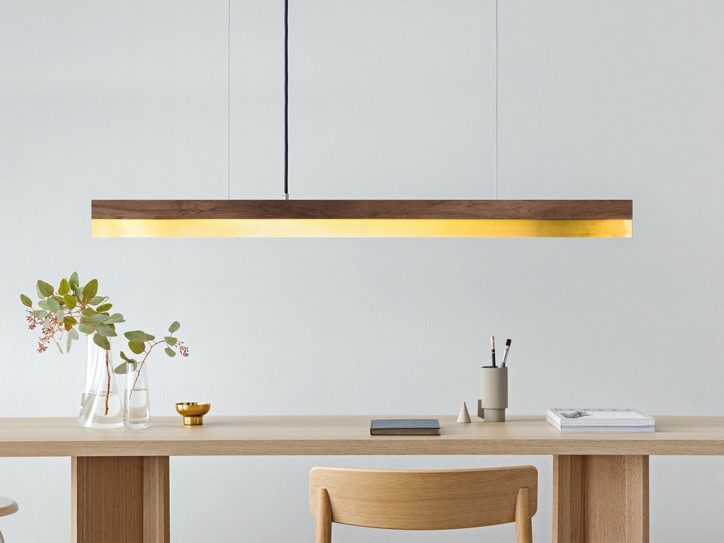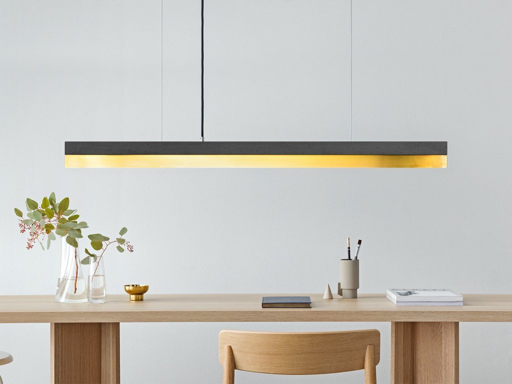 Vďaka svojmu minimalistickému dizajnu a vysoko kontrastným materiálom je možné dizajnové svietidlo prispôsobiť akémukoľvek štýlu zariadenia. Ručne vyrobené tienidlo je dodávané pripravené na inštaláciu s kvalitným LED pásikom, textilným káblom, závesom z drôteného lana, upevňovacím materiálom a matným oceľovým vrchlíkom. Textilný kábel a záves z oceľového lana je možné skrátiť na požadovanú dĺžku. Svetelný zdroj nie je vo svietidle trvalo inštalovaný a je možné ho v prípade potreby kedykoľvek vymeniť.
