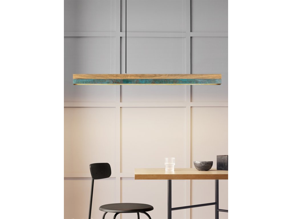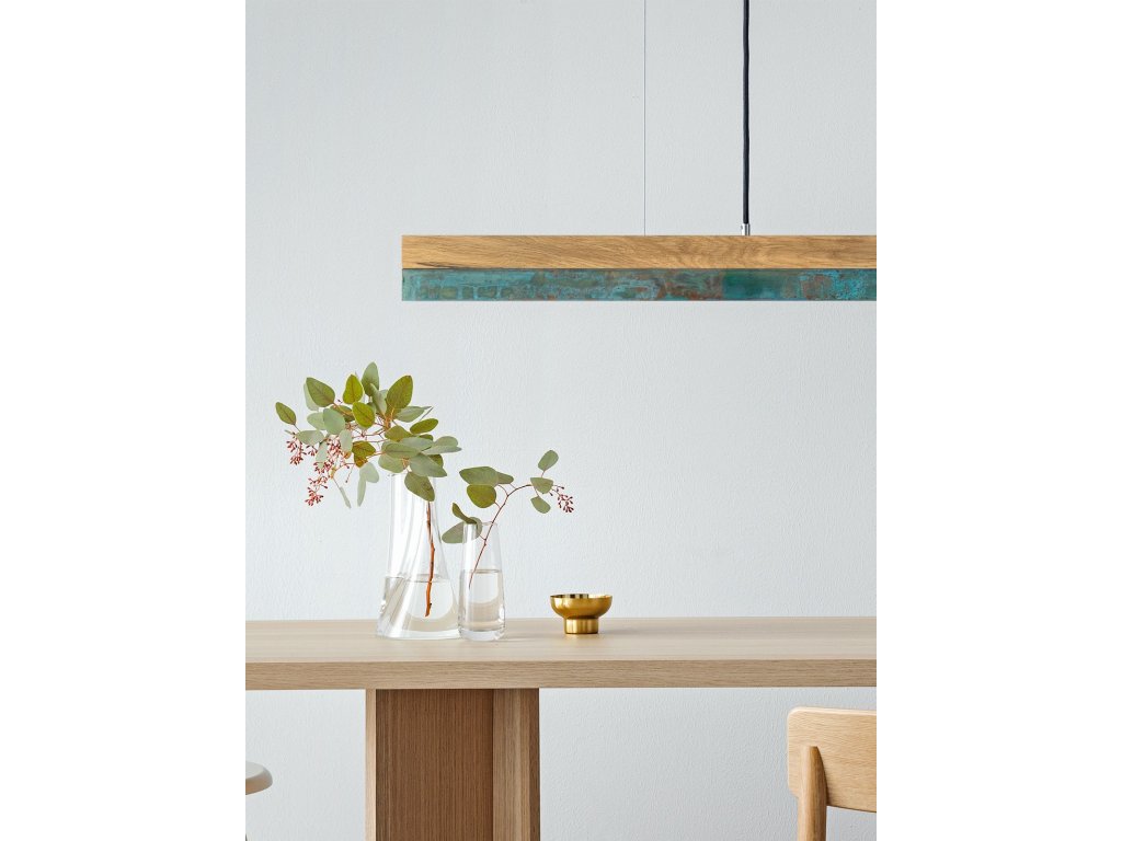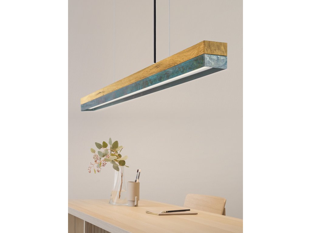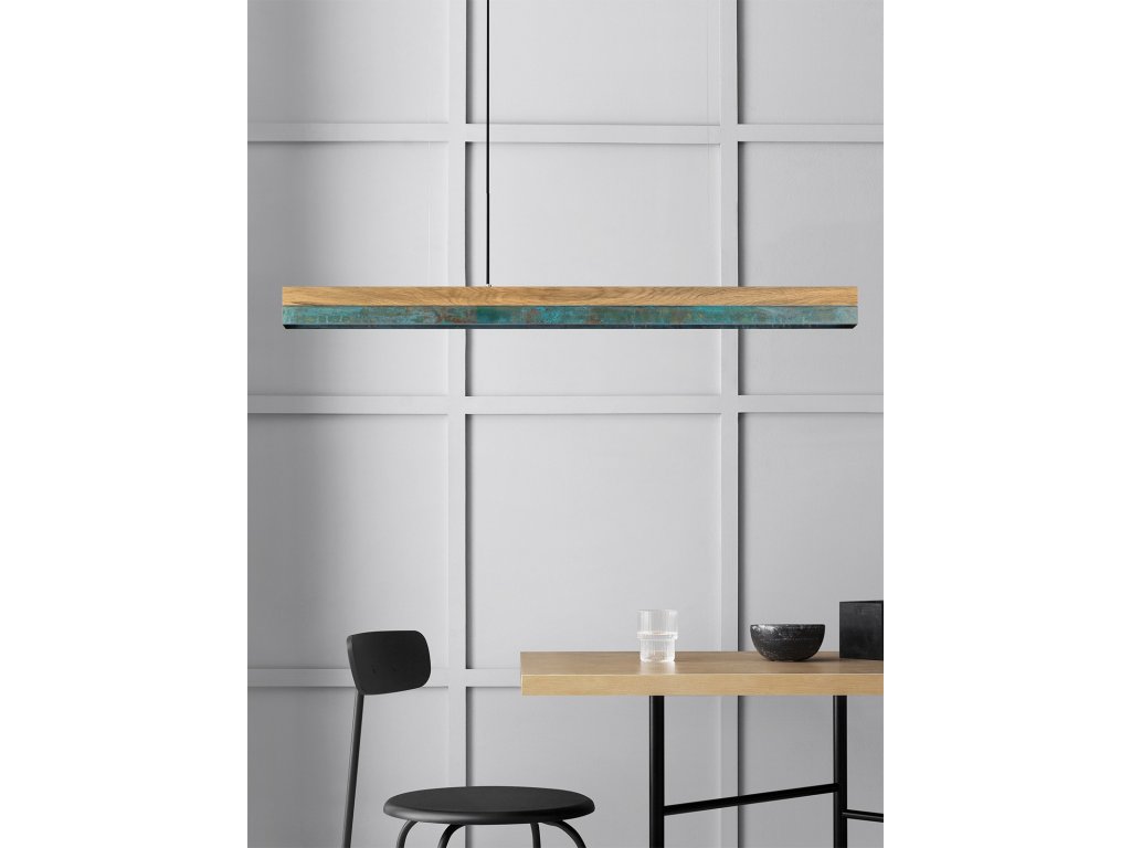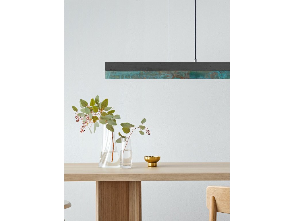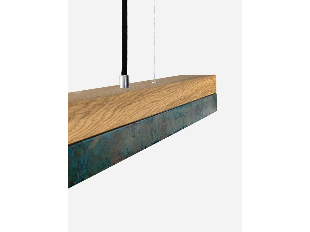 Vďaka svojmu minimalistickému dizajnu a vysoko kontrastným materiálom je možné dizajnové svietidlo prispôsobiť akémukoľvek štýlu zariadenia. Ručne vyrobené tienidlo je dodávané pripravené na inštaláciu s kvalitným LED pásikom, textilným káblom, závesom z drôteného lana, upevňovacím materiálom a matným oceľovým vrchlíkom. Textilný kábel a záves z oceľového lana je možné skrátiť na požadovanú dĺžku. Svetelný zdroj nie je vo svietidle trvalo inštalovaný a je možné ho v prípade potreby kedykoľvek vymeniť.
