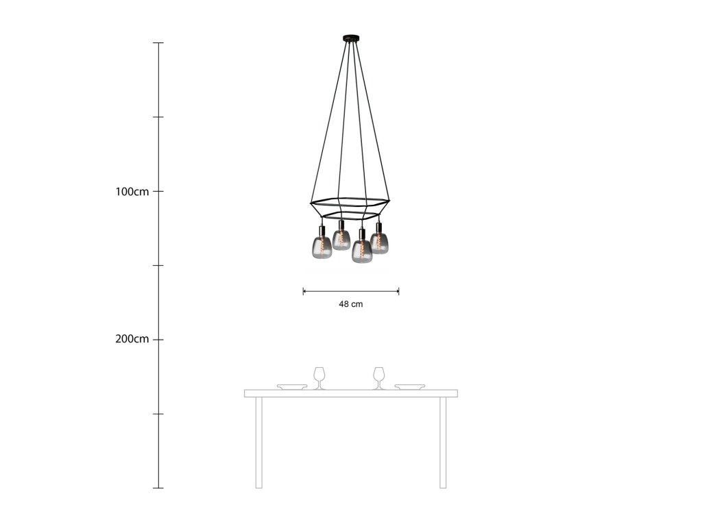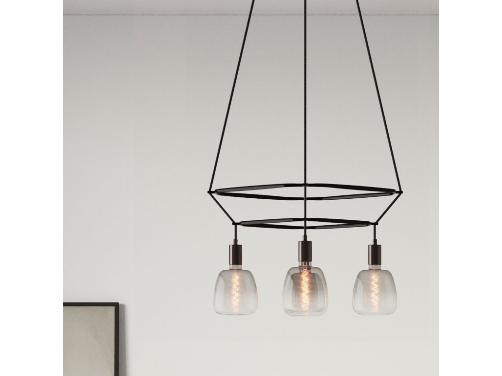 Luster Cage Bona Pastel so 4 zavesenými žiarovkami je originálne svietidlo s rozptýleným svetlom. Svietidlo je dostupné v dvoch verziách: s 2 kusmi štvorcového rámu Cage v priehľadnej úprave z polykarbonátu, alebo v čiernej farbe z recyklovaného plastu. Súčasťou sú aj LED žiarovky. Fascinujúce spojenie našich káblov a dizajnového rámu Cage umožňuje vytvoriť z obyčajného svietidla malé umelecké dielo.