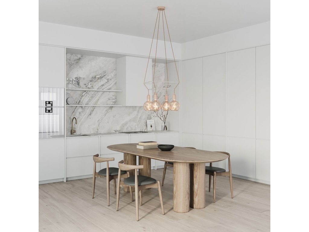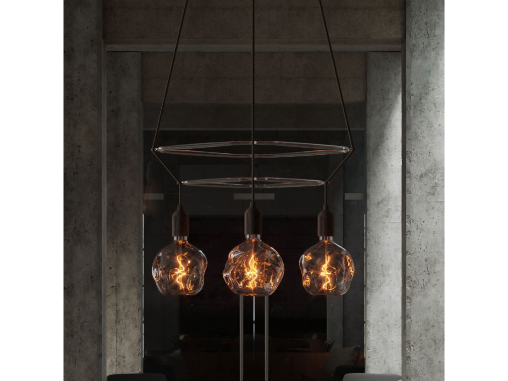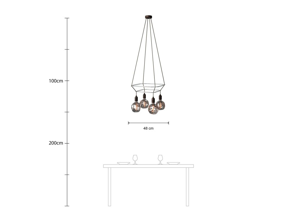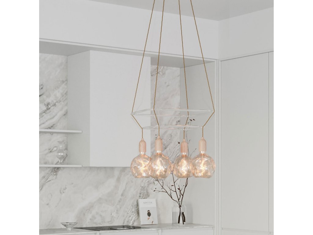 Luster Cage Glóbus so 4 zavesenými deformovanými žiarovkami je originálne svietidlo s rozptýleným svetlom. Svietidlo je k dispozícii s dvoma štvorcovými priehľadnými rámami Cage, vyrobeným z polykarbonátu, a s LED žiarovkami. Fascinujúce spojenie našich káblov a dizajnového rámu Cage umožňuje vytvoriť z obyčajného svietidla malé umelecké dielo.