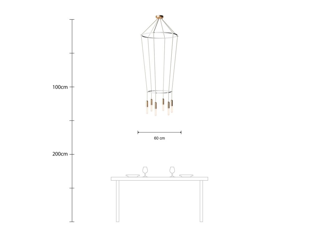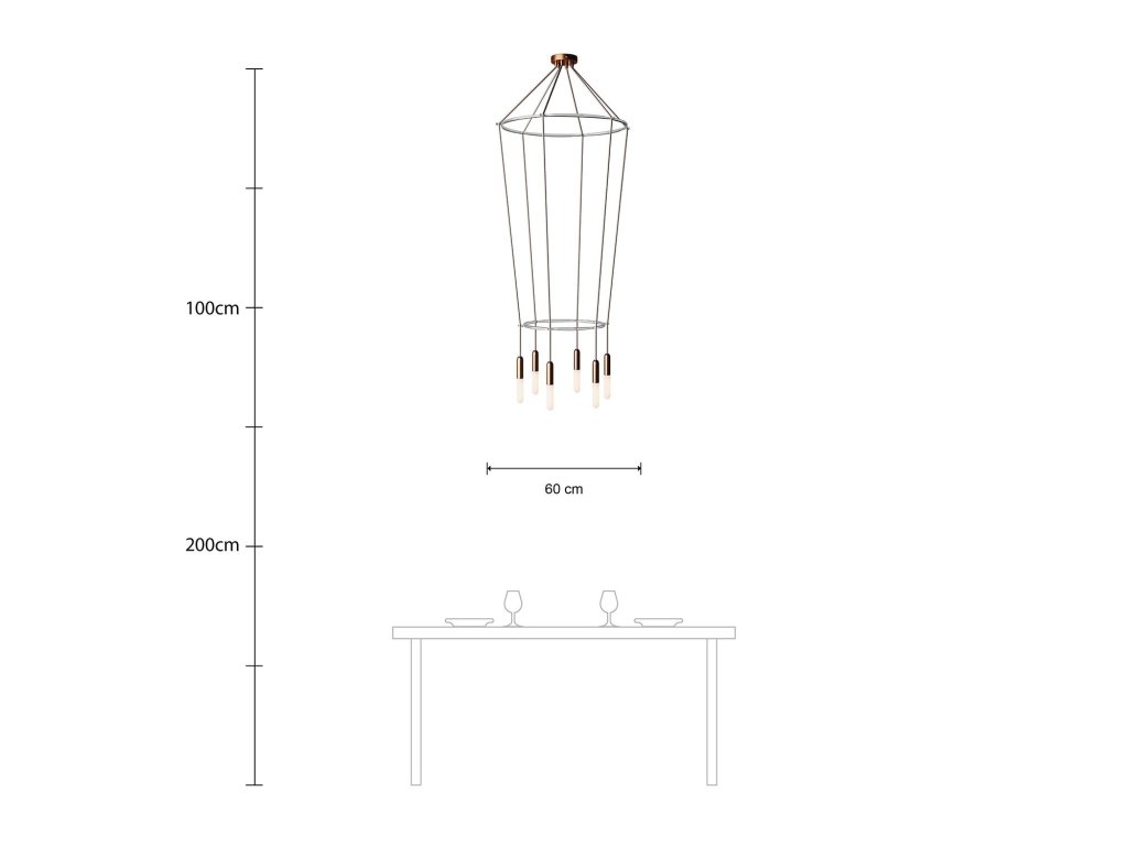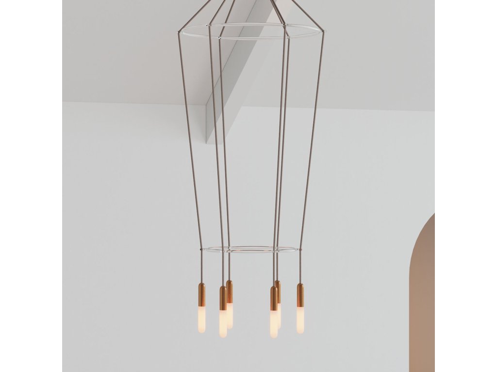 Luster 2 Cage P-Light Lamp so 6 zavesenými žiarovkami sa skladá z: