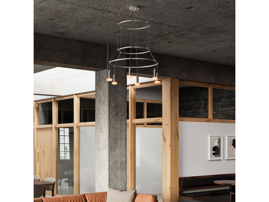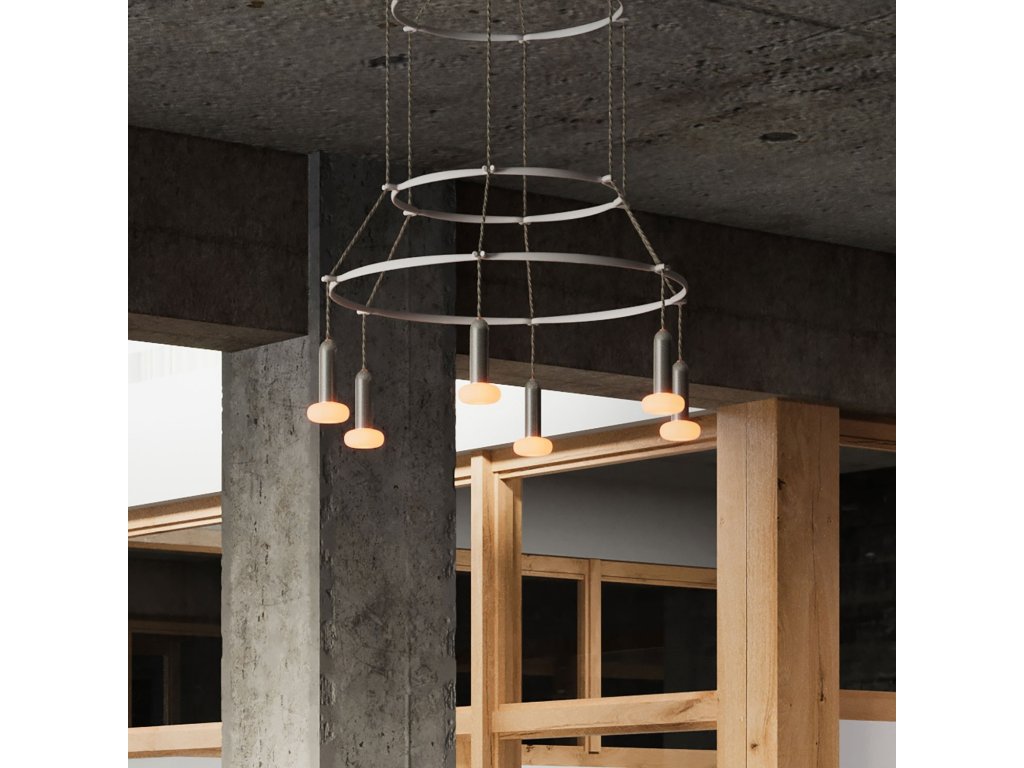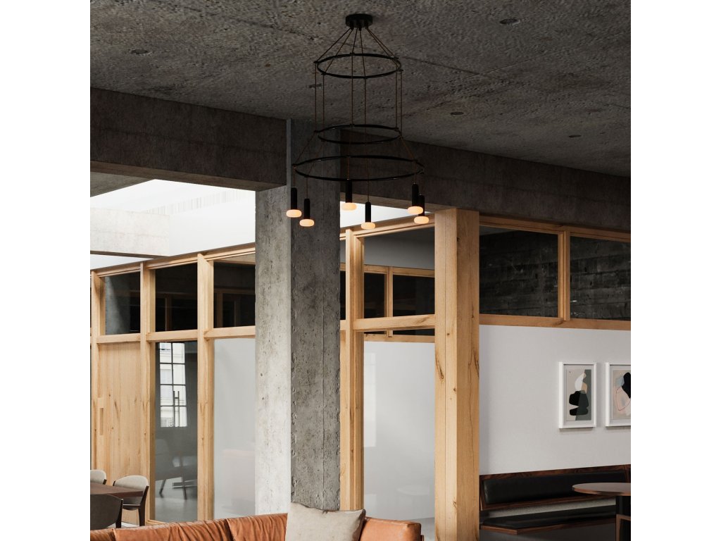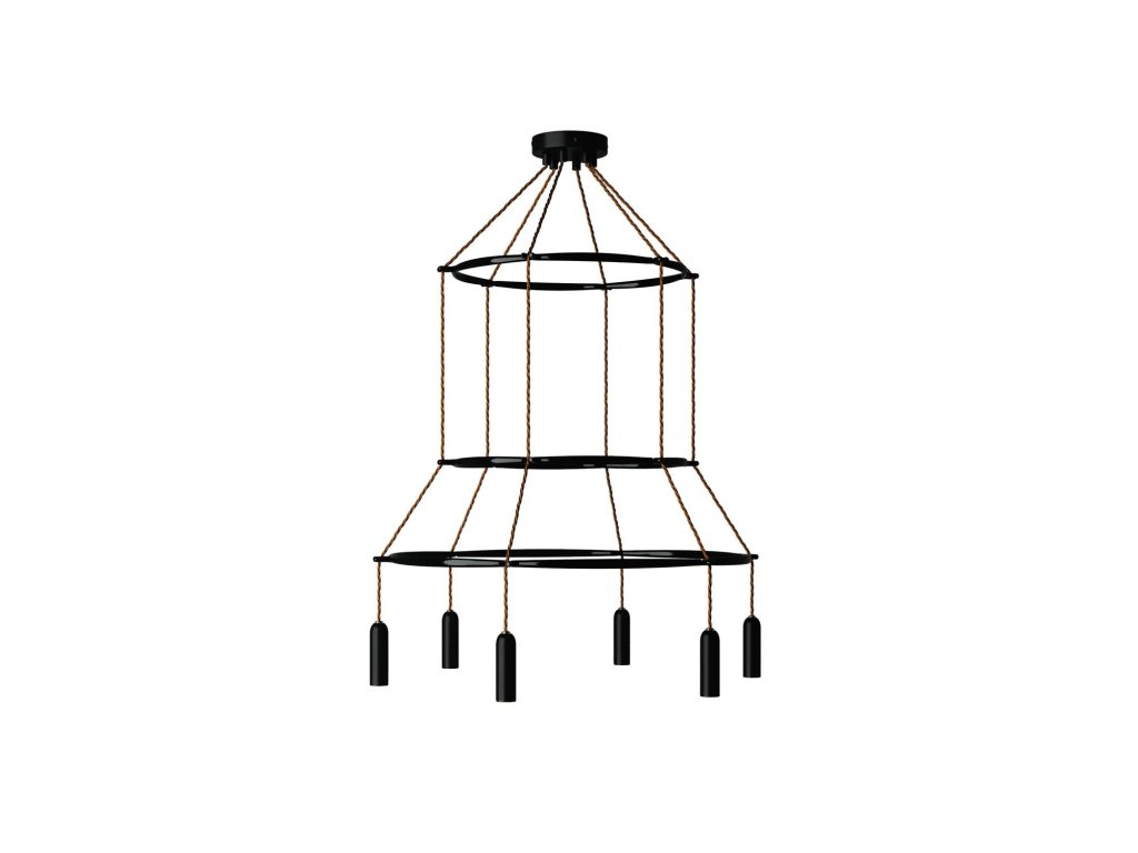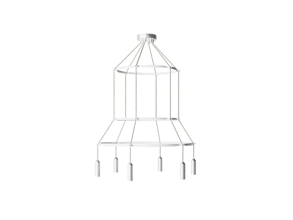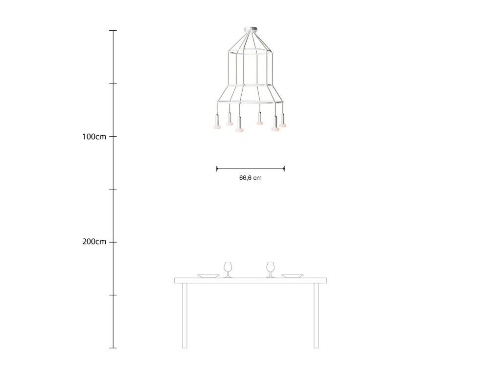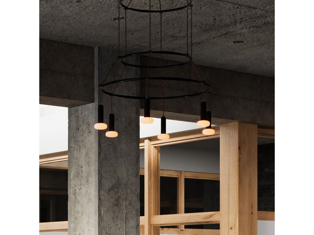 Luster Cage P-Light Dash so 6 zavesenými žiarovkami je originálne svietidlo s rozptýleným svetlom. Luster ponúkame v 2 variantoch: s 3 kruhovými rámami Cage z recyklovaného plastu v čiernej alebo bielej farbe. Súčasťou sú aj LED žiarovky. Fascinujúce spojenie našich káblov a dizajnového rámu Cage umožňuje vytvoriť z obyčajného svietidla malé umelecké dielo.