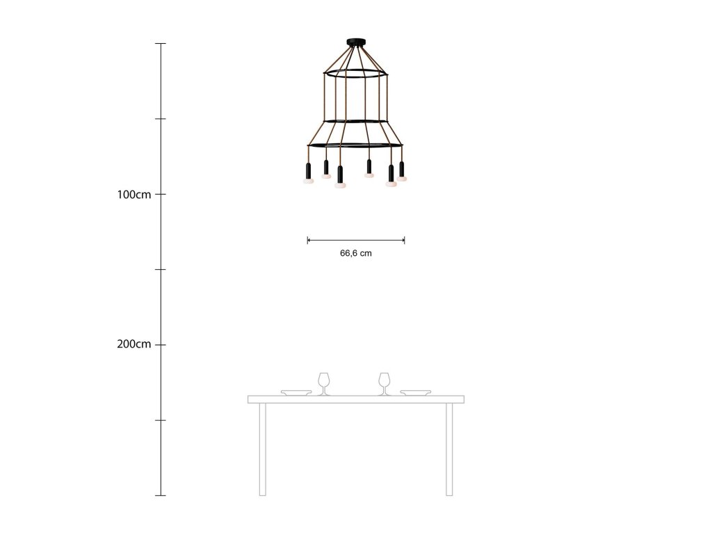 Luster 3 Cage P-Light Dash so 6 zavesenými žiarovkami je vyrobený z: