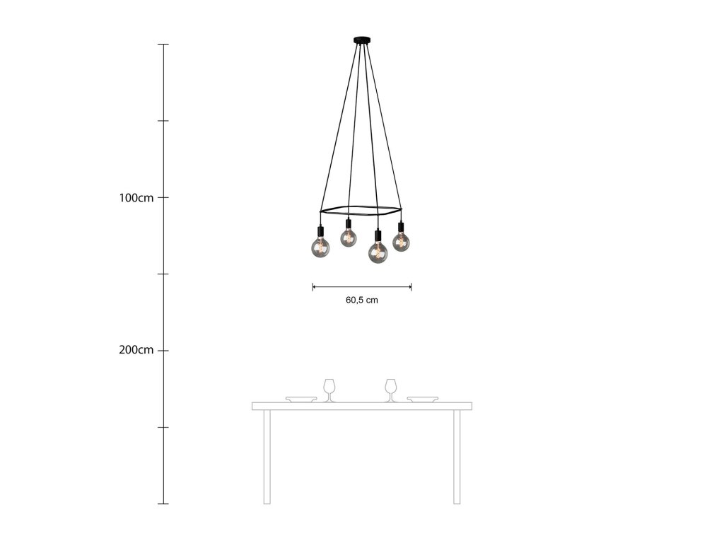 Luster Cage Glóbus so 4 závesnými svetlami a štvorcovou konštrukciou je zostavený z: