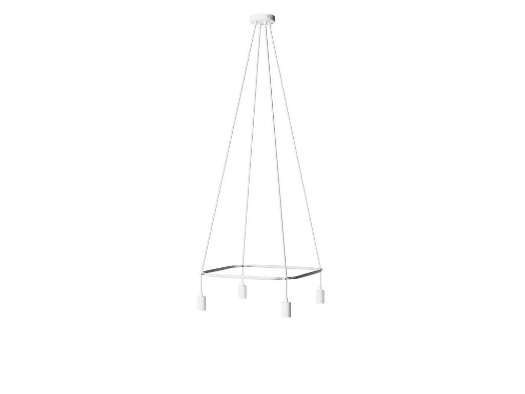 Luster Cage Glóbus so 4 závesnými svetlami je originálne osvetlenie s rozptýleným svetlom. Štvorcový luster je k dispozícii v dvoch verziách: s čiernou a bielou povrchovou úpravou, obe vyrobené z recyklovaného plastu a s vystavenou LED žiarovkou. Vytvárajte fascinujúce a jedinečné tvary pomocou konštrukcie Cage a našich káblov. Každý luster bude malým umeleckým dielom.
