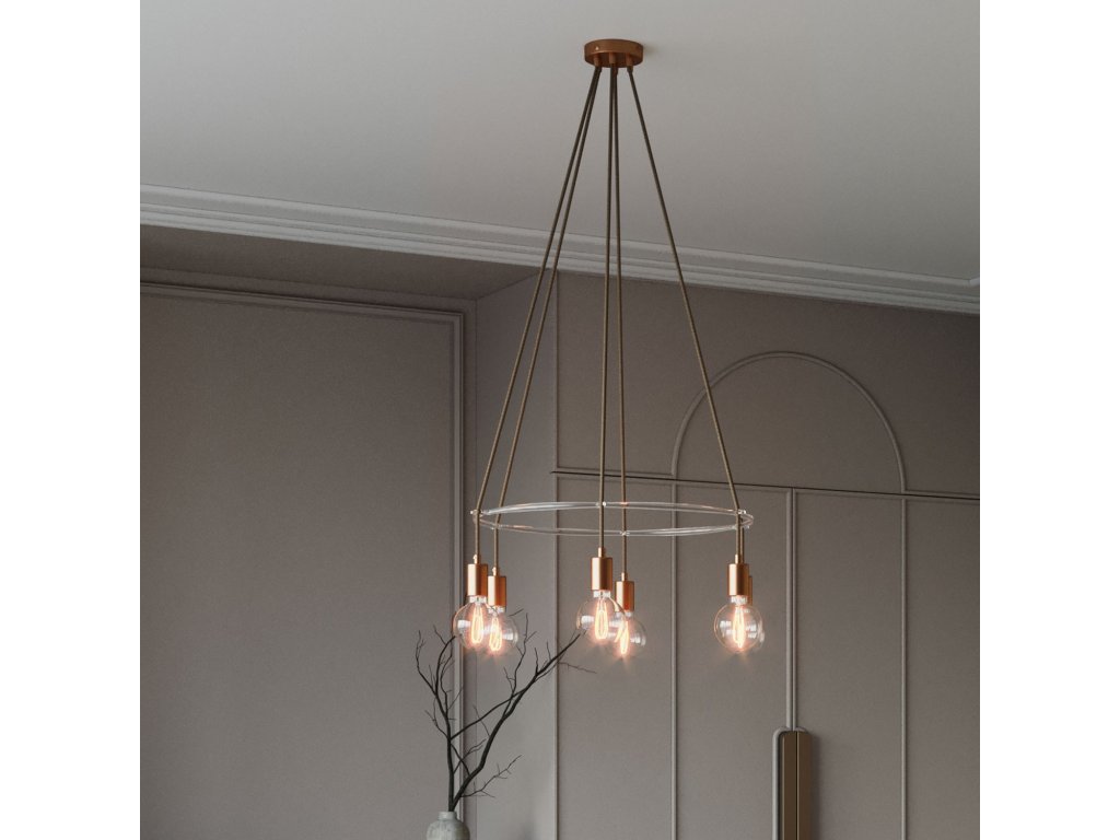 Luster Cage Glóbus so 6 závesnými svetlami je originálne svietidlo s rozptýleným svetlom. Luster je dostupný v 2 verziách: s kruhovým rámom Cage v transparentnej úprave z polykarbonátu, alebo v čiernej farbe z recyklovaného plastu, vrátane LED žiaroviek. Fascinujúce spojenie rámu Cage Kruh a našich káblov umožňuje vytváranie lustrov jedinečných tvarov a farieb.