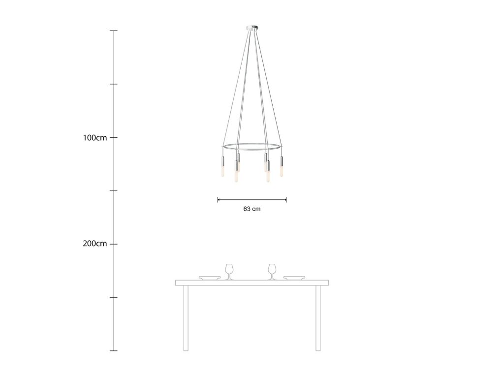 Luster Cage P-Light so 6 zavesenými žiarovkami je originálne osvetlenie s rozptýleným svetlom. Luster je dostupný v 2 variantoch: s okrúhlym rámom Cage v priehľadnej úprave z polykarbonátu, alebo v čiernej verzii z recyklovaného plastu. Oboje je vrátane LED žiaroviek. Fascinujúce spojenie našich káblov a dizajnového rámu Cage umožňuje vytvoriť z obyčajného svietidla malé umelecké dielo.