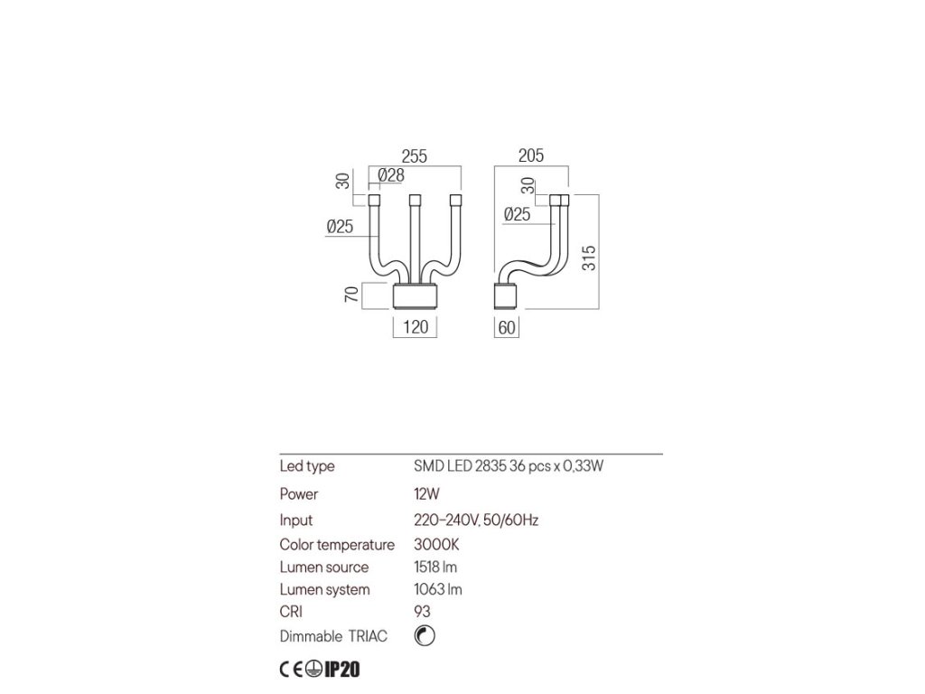 Nástenné svietidlo do interiéru, vybavené SMD LED diódami, lakovaná kovová a hliníková konštrukcia k dispozícii v štyroch farebných variantoch so saténovým akrylovým difúzorom.