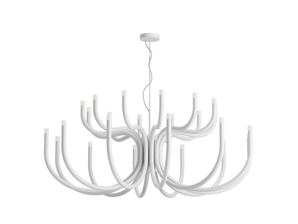 Závesné svietidlo do interiéru, vybavené SMD LED diódami, lakovaná kovová a hliníková konštrukcia k dispozícii v štyroch farebných variantoch so saténovým akrylátovým difúzorom.