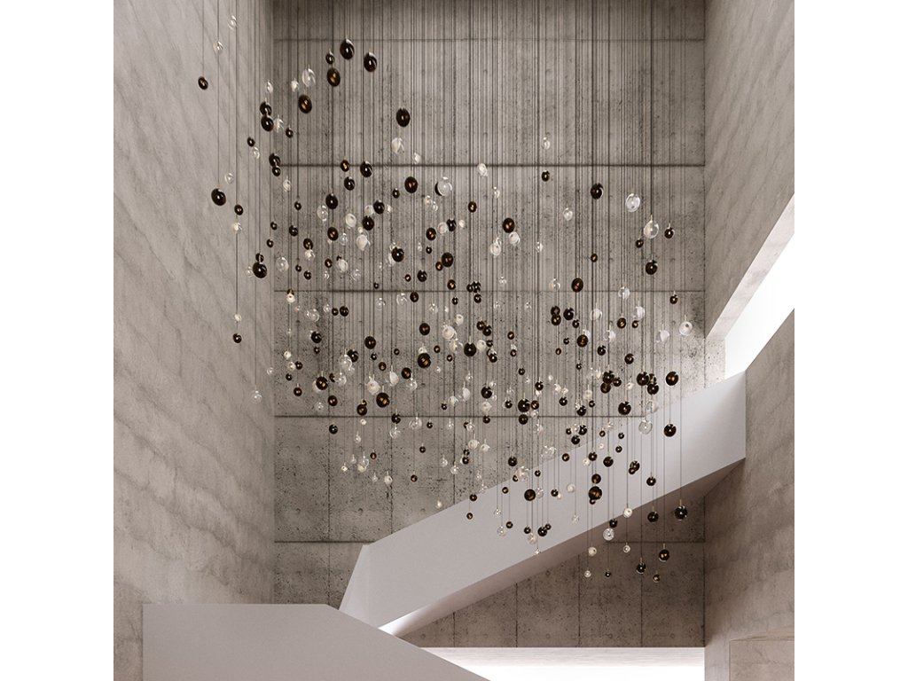 Kolekcia Dark and Bright Star je inšpirovaná hviezdami, vyrába sa v dvoch farbách, tmavej a svetlej. Svetlá verzia je tvorená čírym sklom s nepriehľadným pieskovým povrchom, tmavá verzia je vyrobená z celofarebného skla. Svetelný zdroj umiestnený v strede ručne fúkaného objektu obklopuje dokonale vybrúsená krištáľová hviezda. Jednotlivé svietidlá je možné ľubovoľne kombinovať a vytvárať tak unikátne svetelné konštelácie. Svietidlá dark & bright star sú ručne fúkané, precízne brúsené a následne upravené pieskovaním. intenzita farebného gradientu sa preto môže drobne líšiť. Svetlá verzia je tvorená čírym sklom s nepriehľadným pieskovaním, tmavá verzia je vyrobená z celofarebného skla.