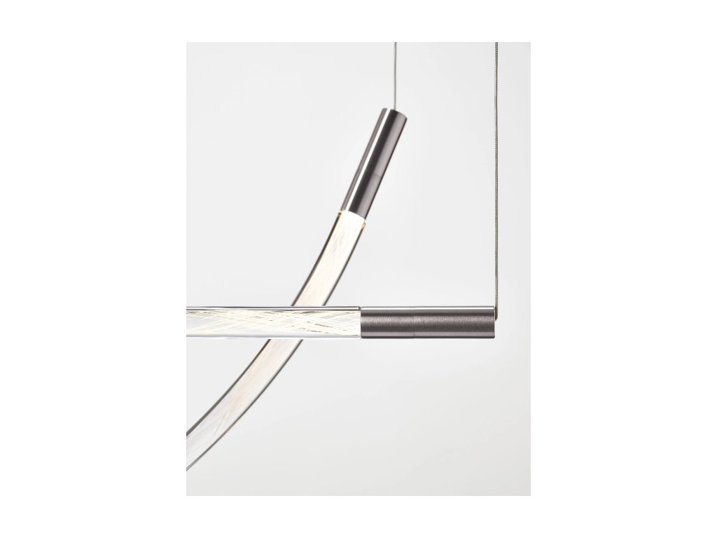 Krištáľové závesné svietidlo Flare má originálny dizajn a dá sa kombinovať s ďalšími variantmi tejto kolekcie. Tyče sú ťahané ručne, každý kus je originál s jedinečným lúčom svetlá špirálovito prechádzajúcim jeho vnútrom. Tento efekt je dosiahnutý tradičnou sklárskou technikou, kedy je jadro z nabraného sklá pokryté malými sklenenými fragmentmi zvanými frita, a potom ponorené späť do roztaveného krištáľu. Sklári potom tento základ natiahnu do požadovanej dĺžky, čím sa fragmenty rozťahujú vnútrom sklenenej tyče. Tým vzniká magická textúra, zdanlivo vlastný vesmír, ktorý sa rozžiari zakaždým, keď sa svietidlo rozsvieti.
