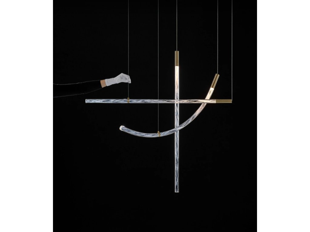 Krištáľové závesné svietidlo Flare má originálny dizajn a dá sa kombinovať s ďalšími variantmi tejto kolekcie. Tyče sú ťahané ručne, každý kus je originál s jedinečným lúčom svetlá špirálovito prechádzajúcim jeho vnútrom. Tento efekt je dosiahnutý tradičnou sklárskou technikou, kedy je jadro z nabraného sklá pokryté malými sklenenými fragmentmi zvanými frita, a potom ponorené späť do roztaveného krištáľu. Sklári potom tento základ natiahnu do požadovanej dĺžky, čím sa fragmenty rozťahujú vnútrom sklenenej tyče. Tým vzniká magická textúra, zdanlivo vlastný vesmír, ktorý sa rozžiari zakaždým, keď sa svietidlo rozsvieti.