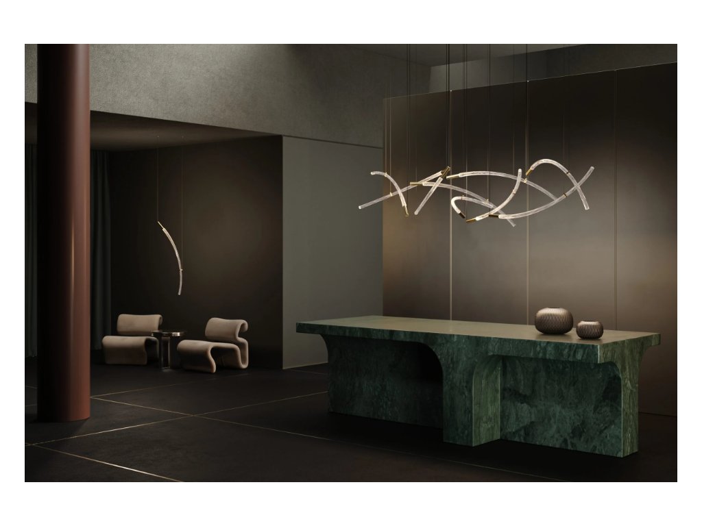 Kolekcia Flare zahŕňa krištáľové sklenené tyče v troch tvaroch, jednu dokonale rovnú a dve rôzne ohnuté. Je možné ich nekonečne kombinovať a vytvárať tak vlastné inštalácie.