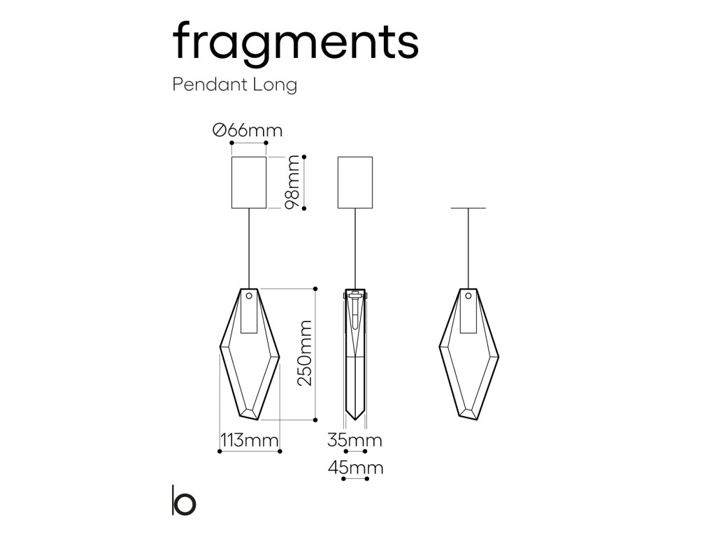 Kolekcia Fragments stelesňuje pre značku BOMMA typickú kombináciu inovácie, remeselnej zručnosti, technológií a výrazného designu. Tvary pripomínajú drahokamy vytvorené tlakom pod zemským povrchom, Ktoré odhaľujú svoju vnútornú krásu. BOMMA ponúka osvetlenie Fragments v dvoch veľkostiach – krátke a dlhé – av troch farbách: čiernej, bielej a Flamingo Mint. Elegantné, minimalistické kovania pre osvetlenie sú k dispozícii v povrchovej úprave kartáčovaná zlatá alebo antracit.