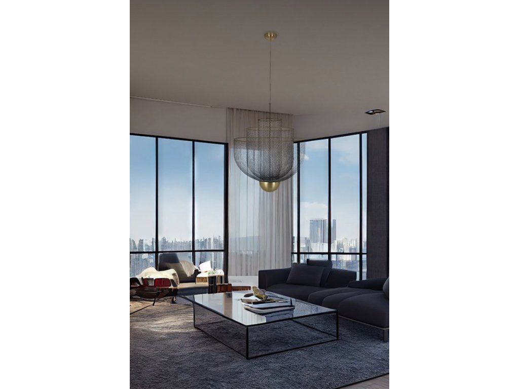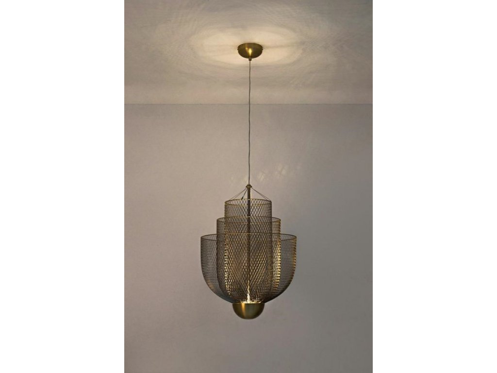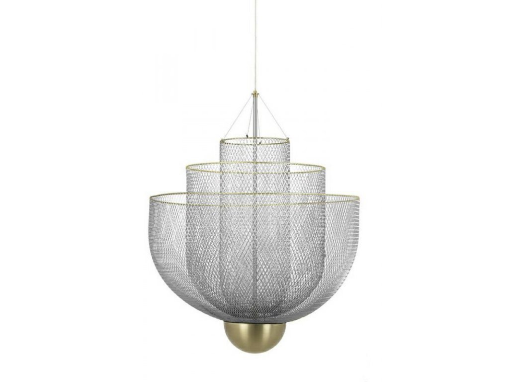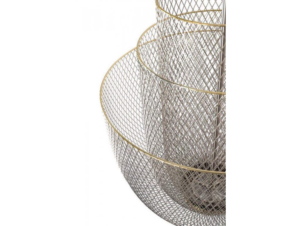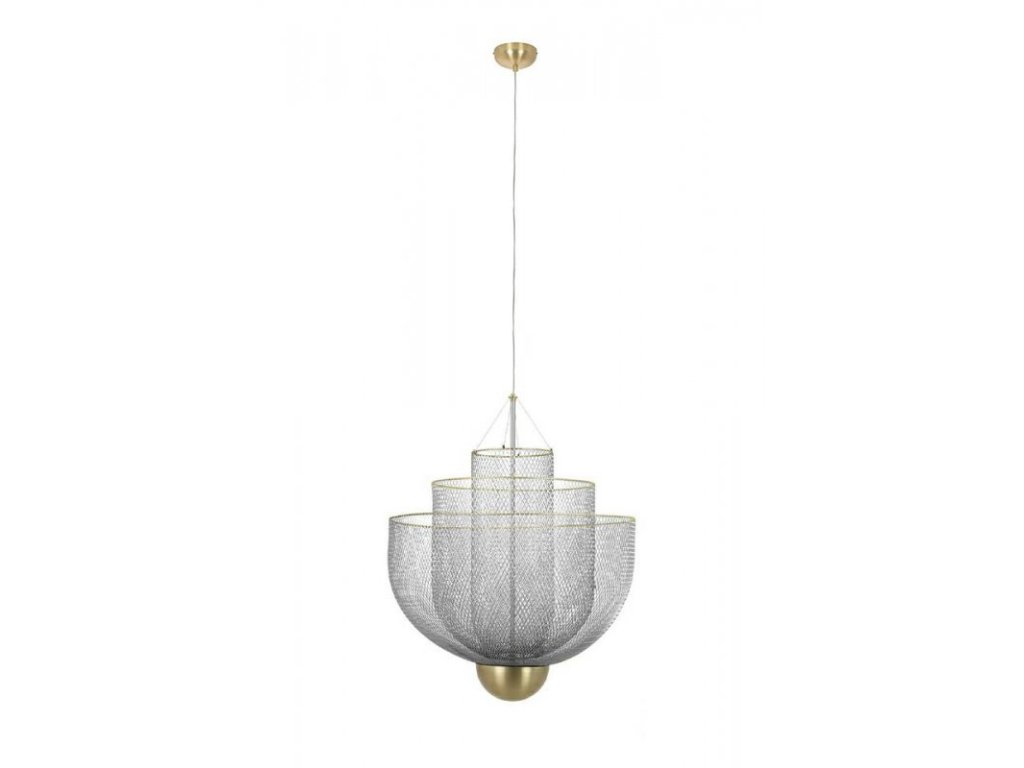 Luxusné závesné svietidlo Illusion L v strieborno-zlatej farbe. Trojdielne tienidlo je vyrobené z jemnej kovovej sieťoviny a umiestnené na kovovej tyči. Celok je zakončený kopulou v zlatej farbe, v ktorej je umiestnený svetelný zdroj LED. Vďaka použitiu sieťoviny je svetlo rozptýlené a vytvára zaujímavý vizuálny efekt. Svietidlo Illusion je možné s úspechom použiť v domácnosti aj v hotelových a reštauračných priestoroch.