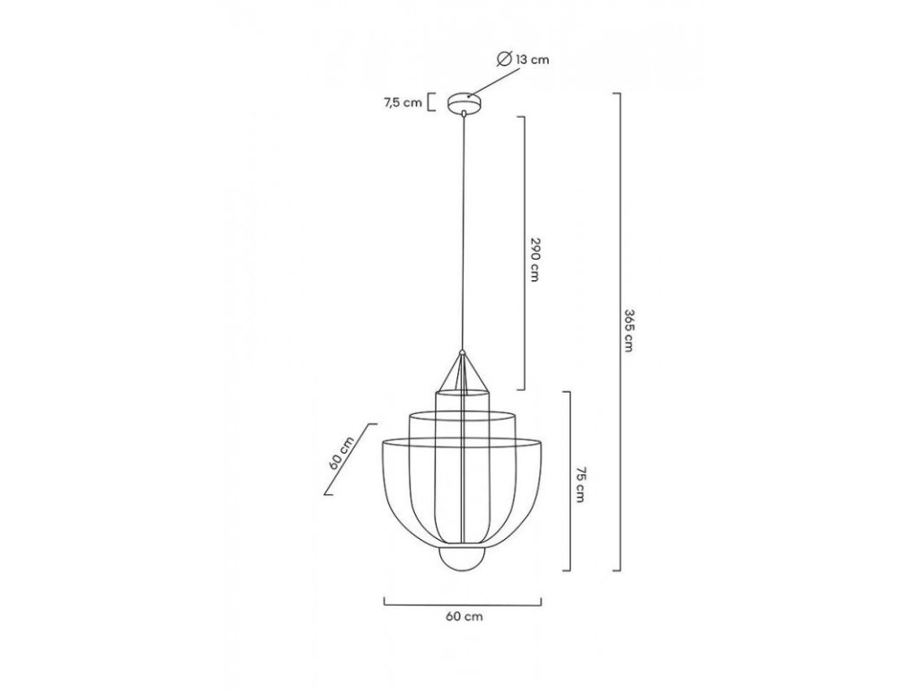 Rozmery svietidla: Š 60 cm / V 75 cm / H 60 cm Difúzor:Ø 60 cm Kábel: 290cm