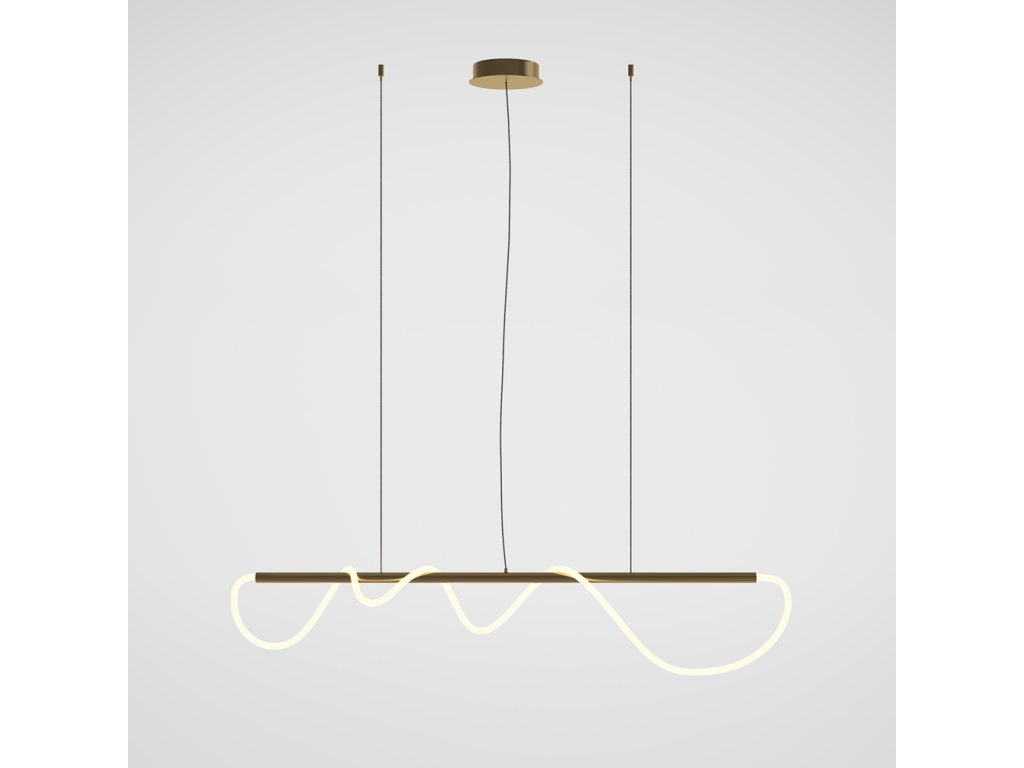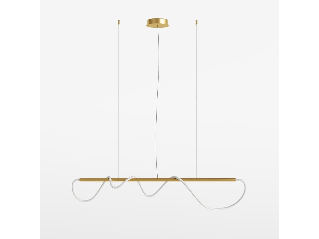 Krásne designové svietidlo od nemeckej značky Maytoni zo série TAU. Toto LED svietidlo má biely opálový polykarbonátový difúzor a zlaté detaily. Svietidlo je flexibilné, aby ste mohli vytvárať rôzne osvetlenie, namotaním difúzora na závesnú tyč. Ide o integrovaný LED modul, bez potreby žiarovky.