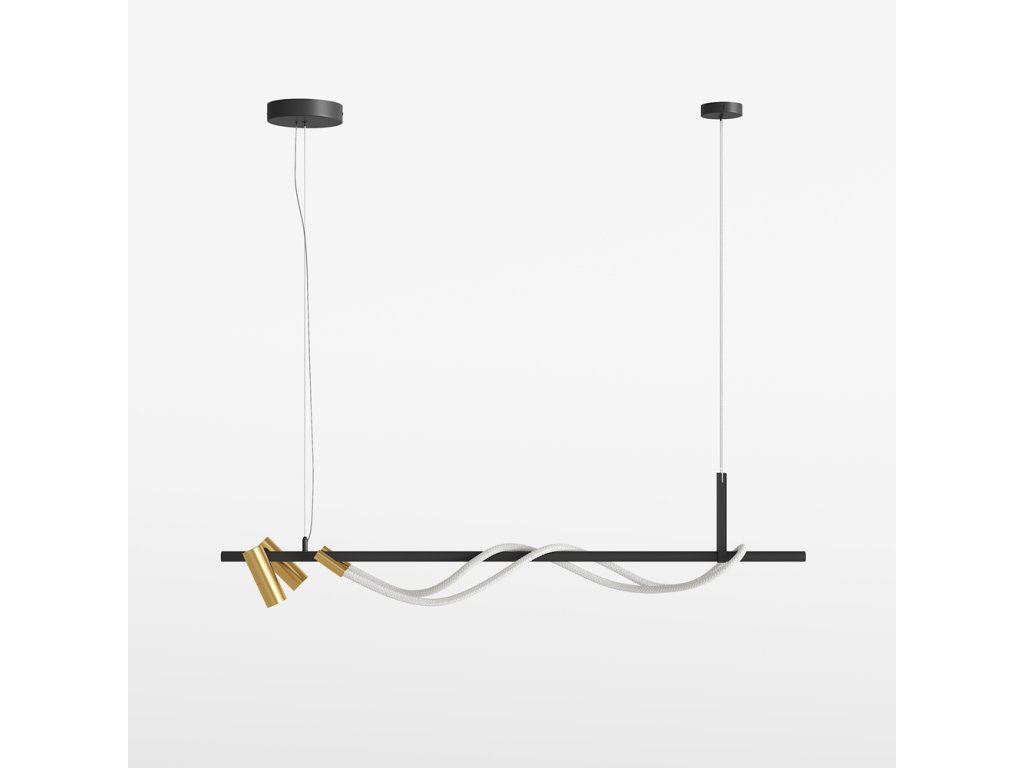 Krásne designové svietidlo od nemeckej značky Maytoni zo série TAU. Toto LED svietidlo má biely opálový polykarbonátový difúzor a zlaté detaily. Svietidlo je flexibilné, aby ste mohli vytvárať rôzne osvetlenie, namotaním difúzora na závesnú tyč. Ide o integrovaný LED modul, bez potreby žiarovky.
