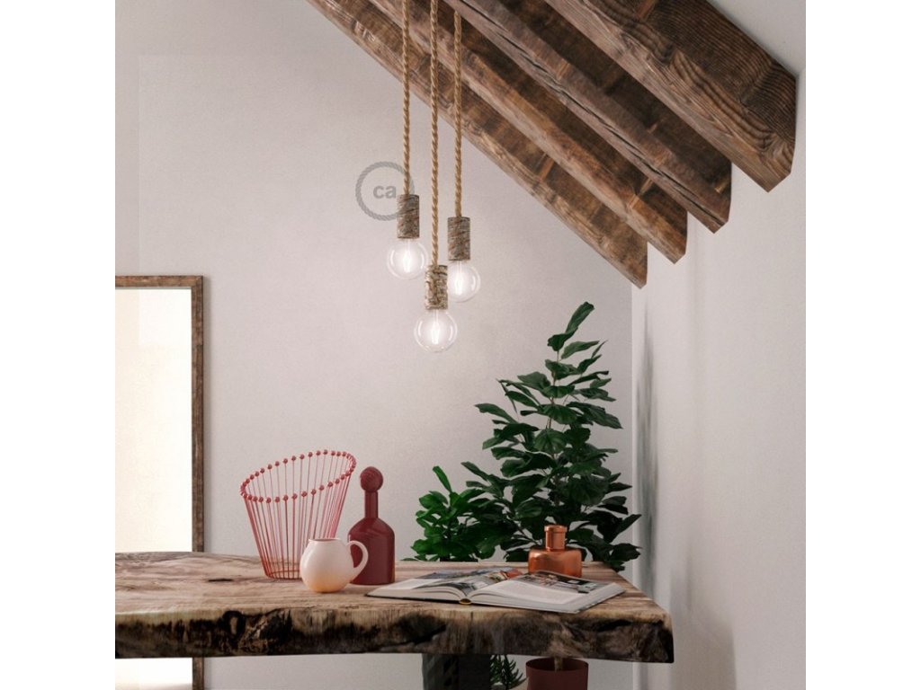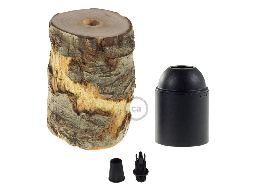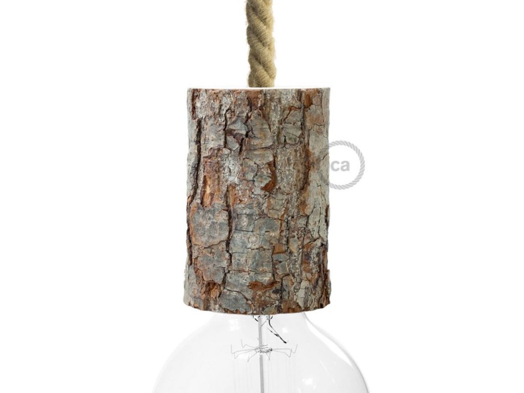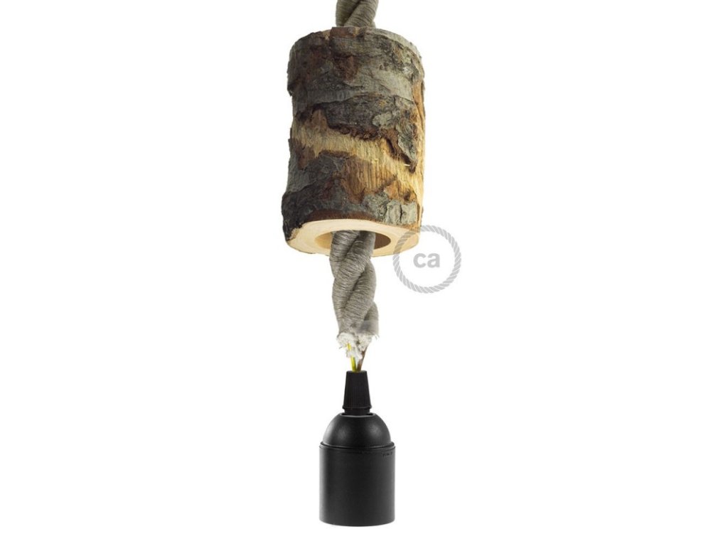Malá drevená objímka E27 s kôrou je ideálna na vytvorenie stolnej alebo stropnej lampy so špirálovým, okrúhlym alebo XL lanovým káblom (s priemerom 16mm). Každá objímka je jedinečná a vyrobená v Taliansku z jediného kusu pravého dreva: každá má iný tvar a povrch, s mierne premenlivou hrúbkou (medzi 5 a 8 mm). Vďaka svojmu peknému drsnému vzhľadu je cenným ozdobným prvkom pre chaty alebo vidiecke domy.