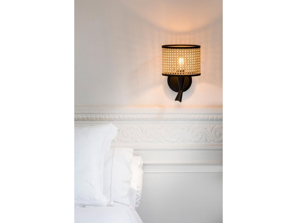 MAMBO čierna/ratan nástenná lampa s čítacou lampičkou pr.210 - FARO
