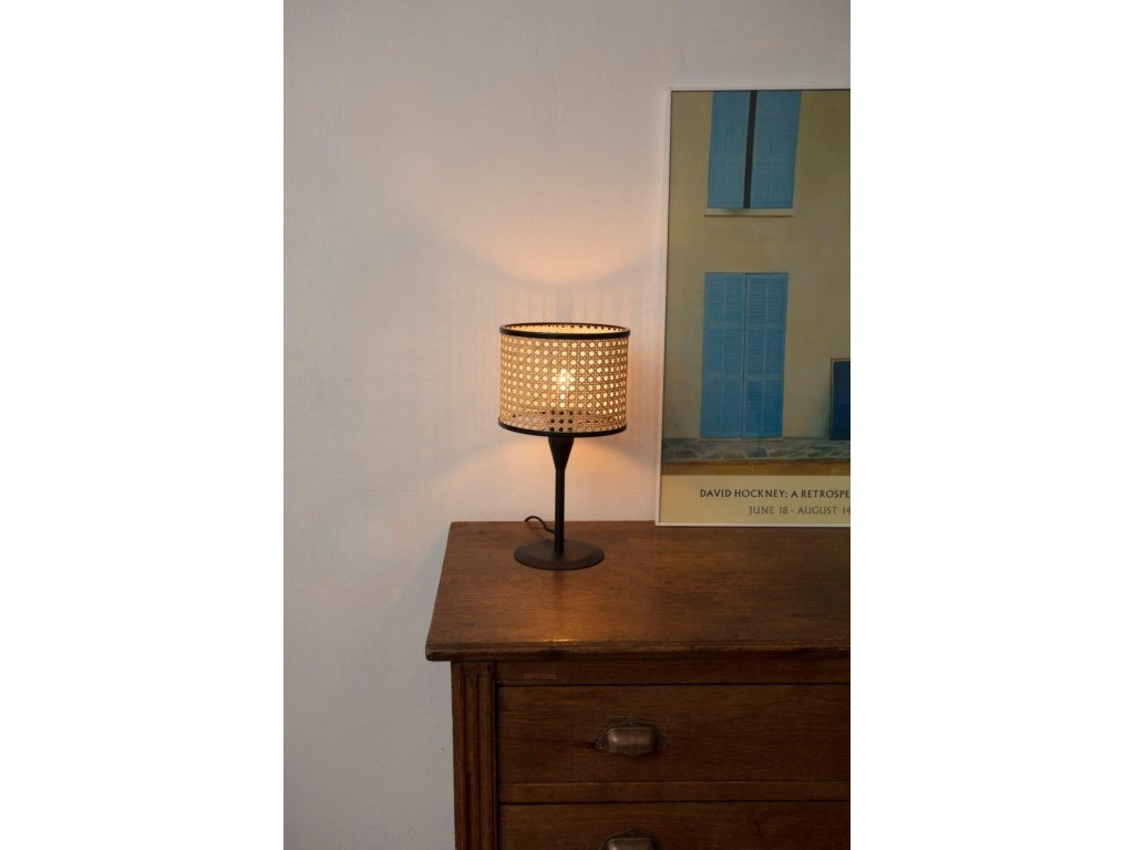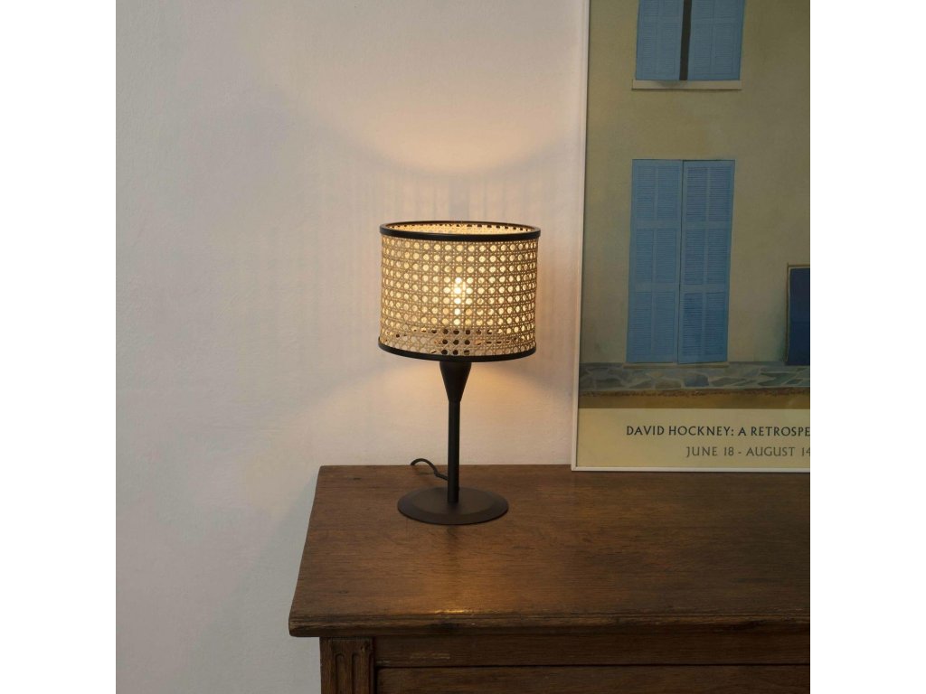 MAMBO S čierna/ratan stolná lampa - FARO