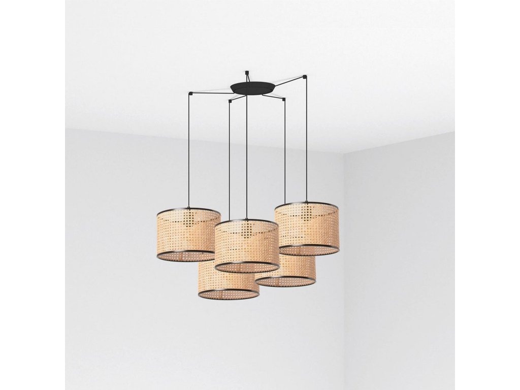MAMBO závesné svietidlo, čierna / ratan, pr.320 5L - FARO