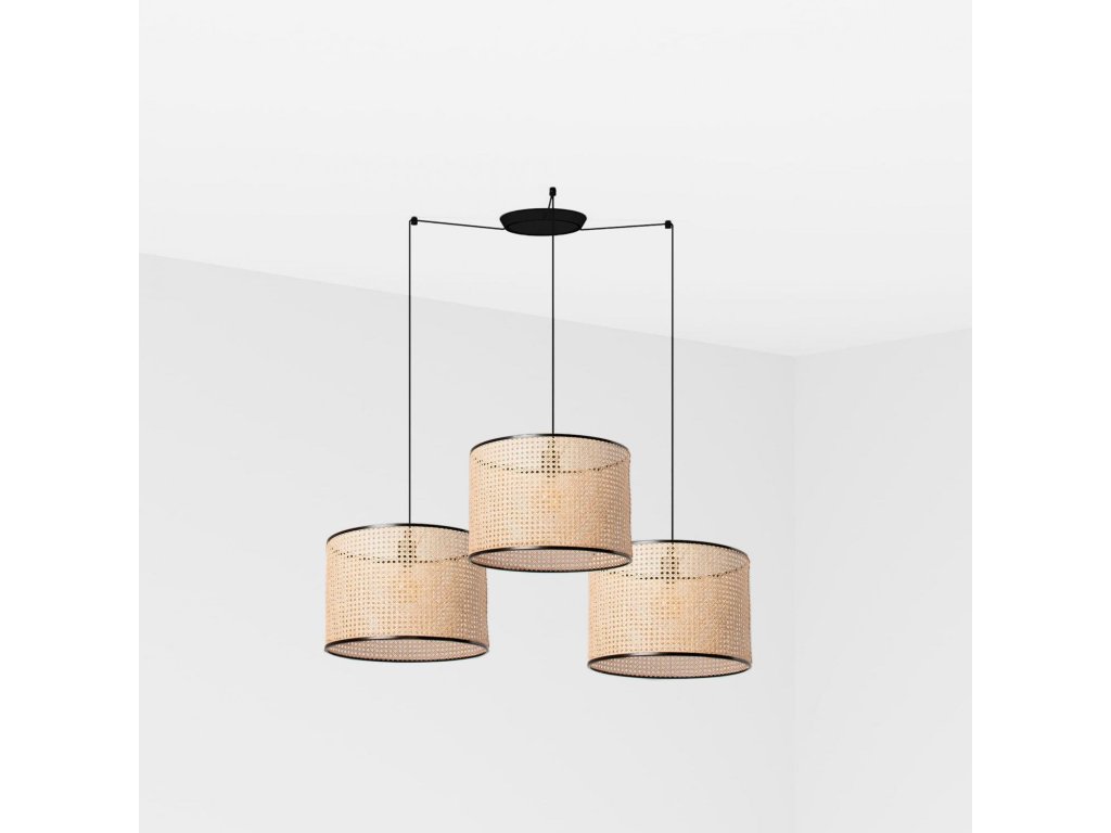 MAMBO závesné svietidlo, čierna / ratan, pr.450 3L - FARO