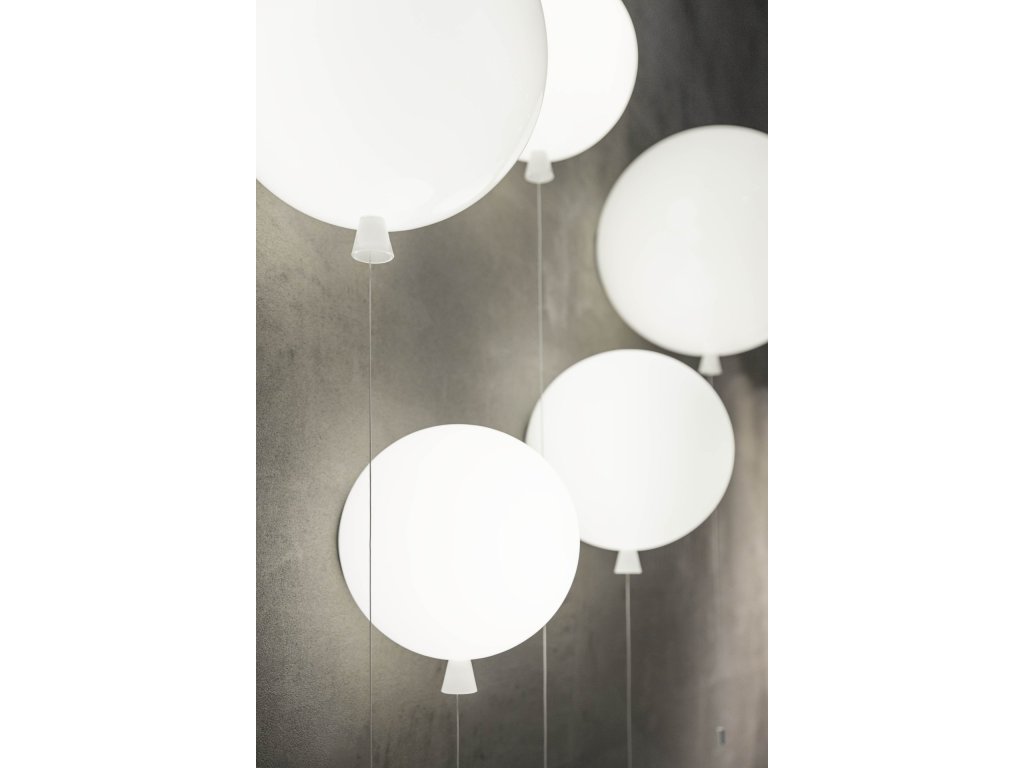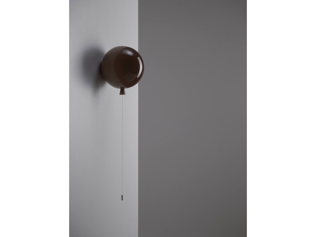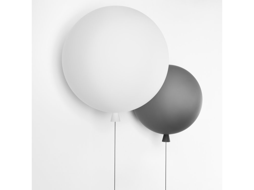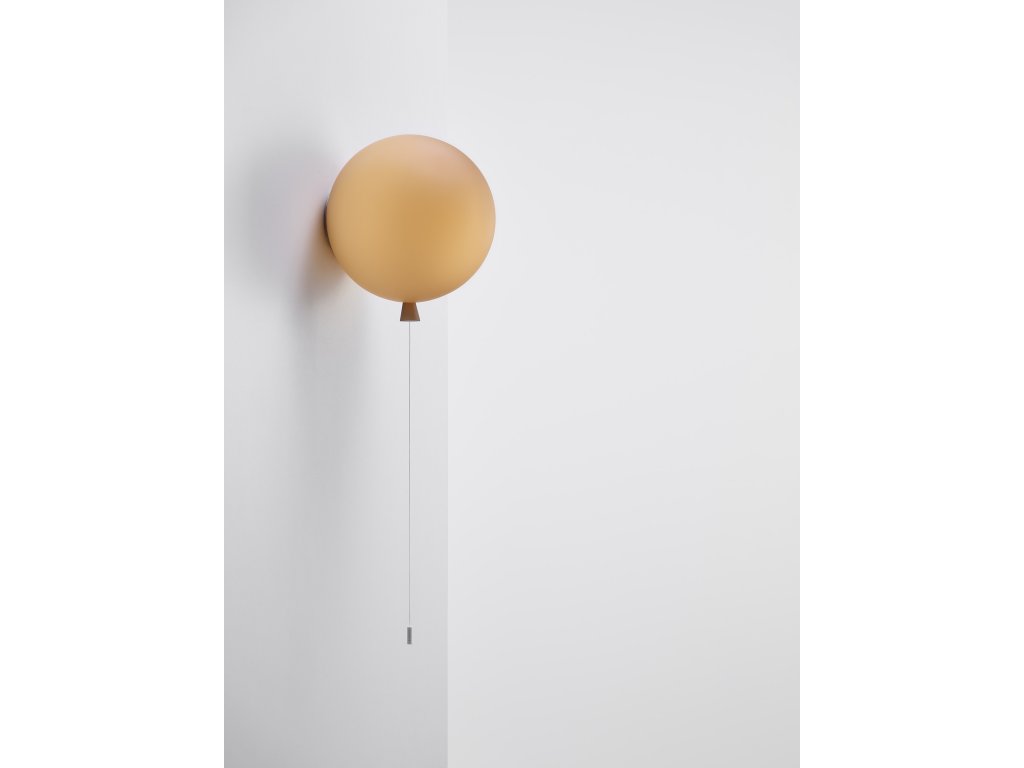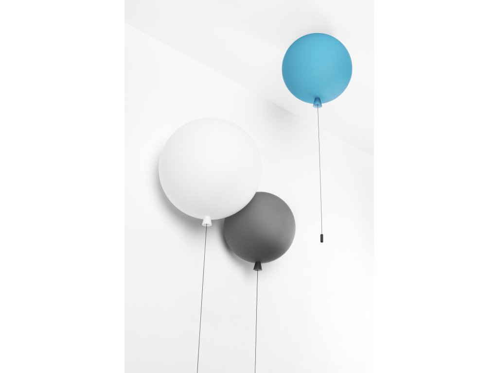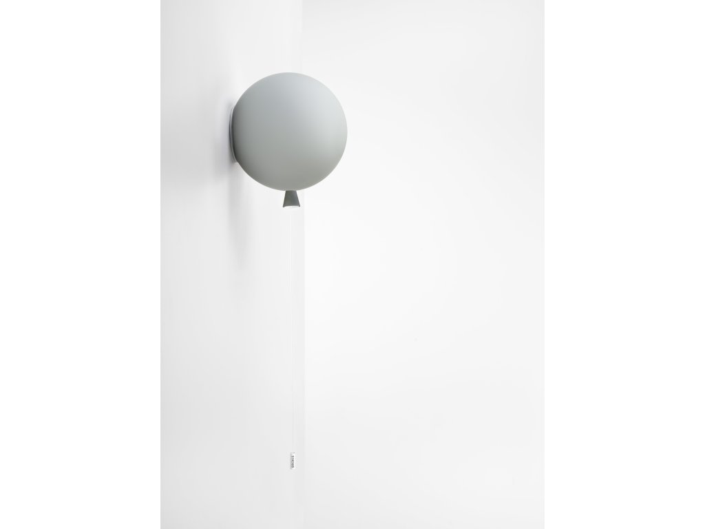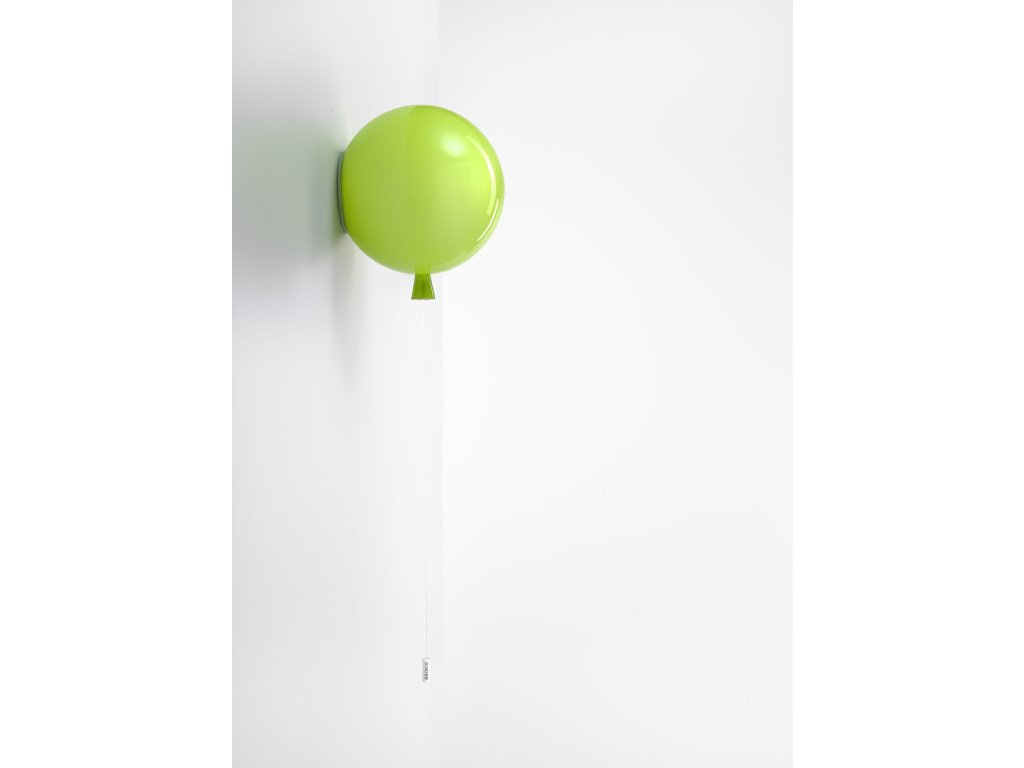 Nástenné svietidlo MEMORY o šírke 25 cm a výške 27,5 cm, v tvare nafúknutého balónika v niekoľkých farebných prevedeniach. Kolekcia stropných a nástenných svietidiel Memory je inšpirovaná spomienkami na detstvo. Visiace šnúry slúžia na vypínanie a zapínanie svietidiel. Tri veľkosti a množstvo farebných prevedení dáva v interiéri voľný priechod hre, fantázii a vytvoreniu rôznych svetiel. Triplex opálové lesklé sklo - ručná výroba v ČR.