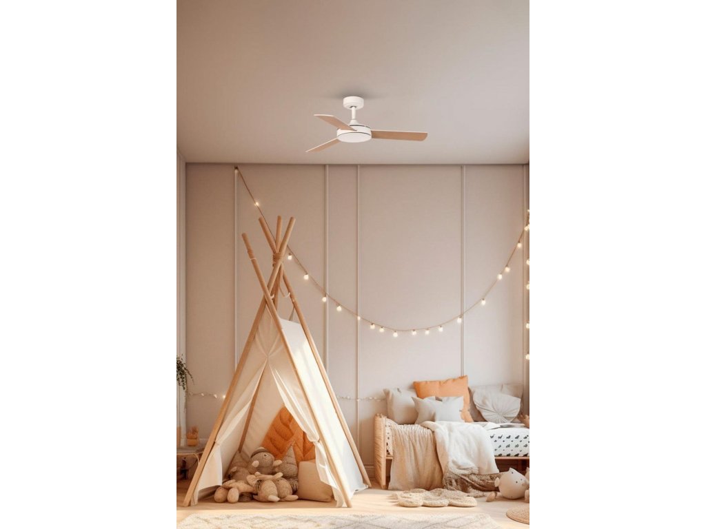 MINI MALLORCA S stropný ventilátor, biela/javor - FARO