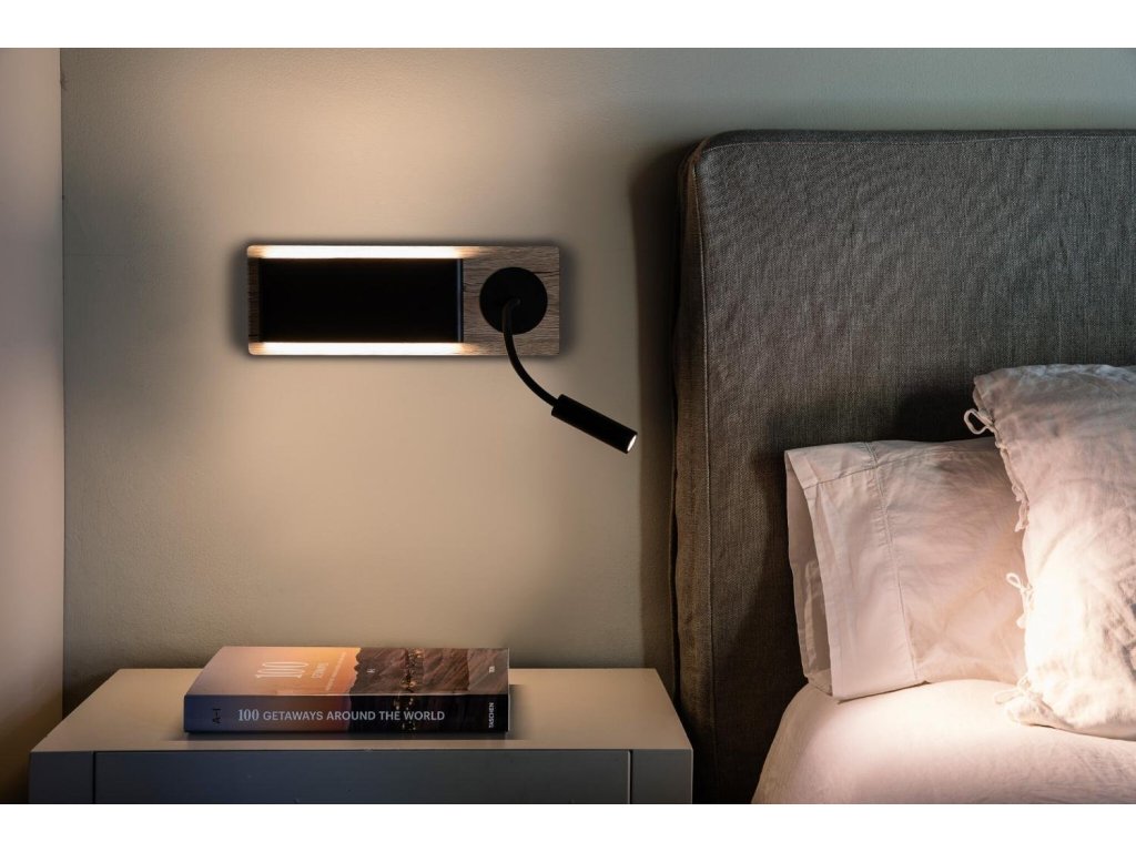 MOOD RCT nástenná lampa, čierna a drevo, s čítacou lampičkou - FARO