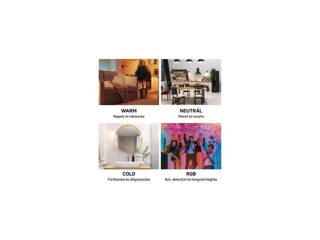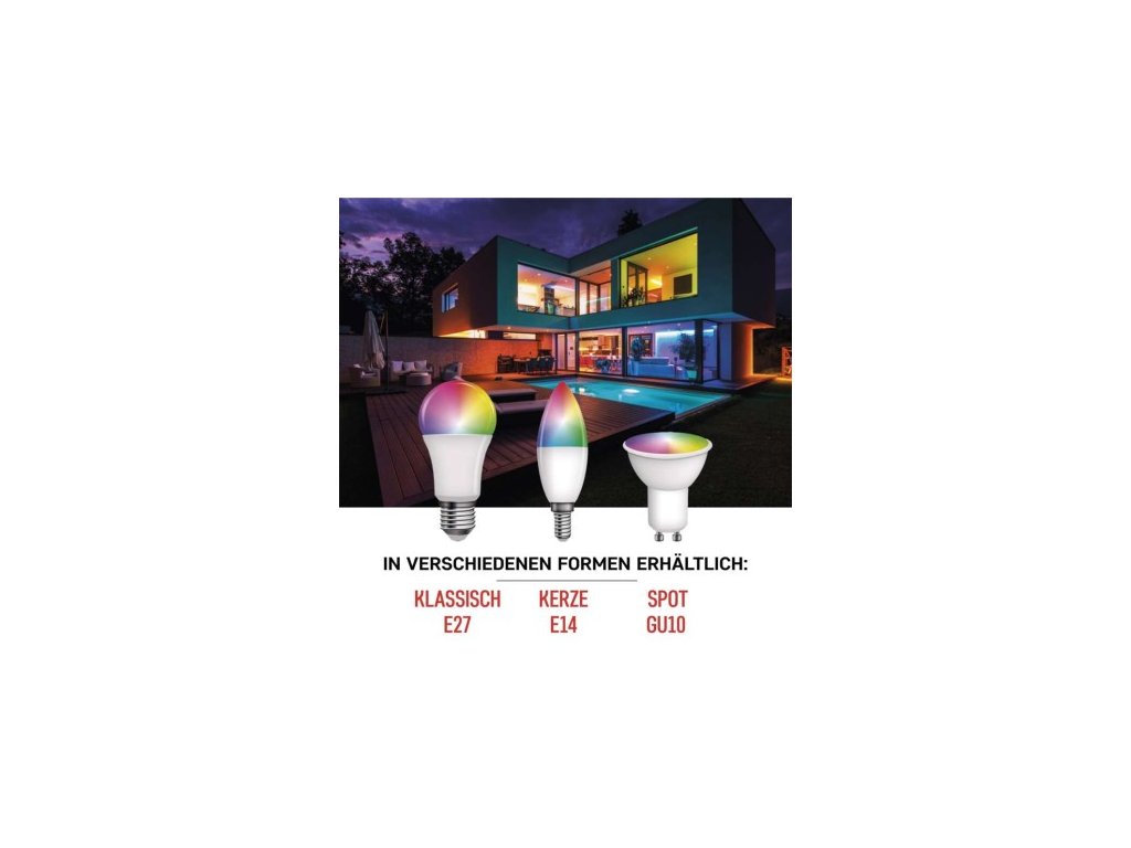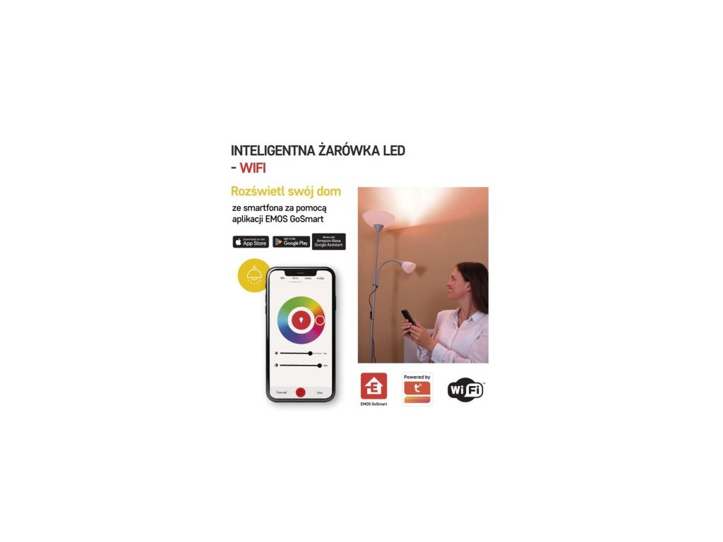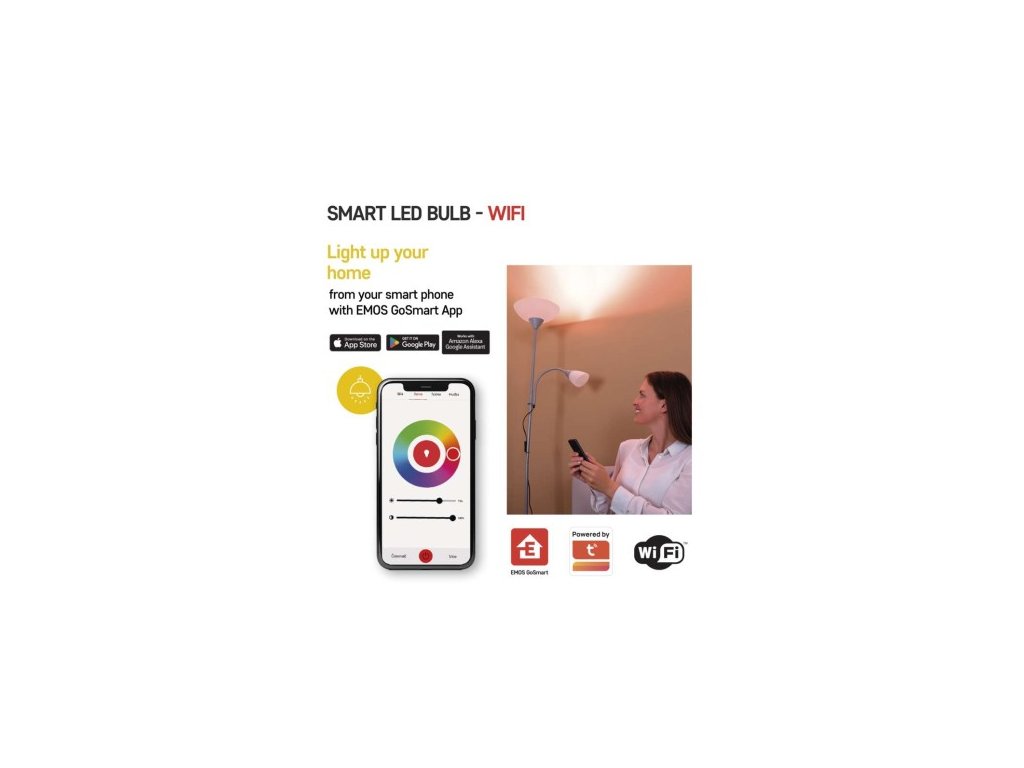 farba svetla: RGB|energetická trieda: F|index podania farieb (CRI): 80|kompatibilita: EMOS GoSmart, TUYA, LIDL, Smartlife|náhrada za žiarovku: 60 W|napätie: 230 V~/50 Hz|notifikácia do mobilnej aplikácie: áno|ovládanie hlasovými (uchytenie žiarovky): E27|počet čipov: neuvádza sa|počet spínacích cyklov: 15 000|podporované OS: Android, iOS|prenosová frekvencia: 2,4 GHz WIFI|príkon: 9 W|predajný obal: 1 ks, krabička|protokol: Wi-Fi| 120 mm|stmievateľná: áno|svetelná účinnosť: 90 lm/W|svetelný tok: 806 lm|technológia: LED|teplota chromatickosti: 2 700–6 500 K|tvar: A60|typ čipov: SMD|účiník: 0,0 doba: 2 roky|životnosť: 20 000 hodínDodatočné parametre