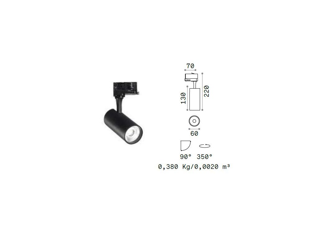 - valcový hliníkový projektor vhodný pre inštaláciu na trojfázovú dráhu.