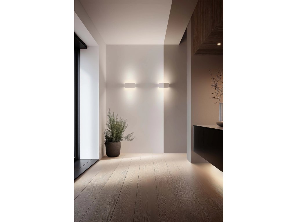 Nástěnná lampa Gemini zajišťuje vynikající vizuální komfort díky LED světelnému zdroji, který je vždy skrytý.