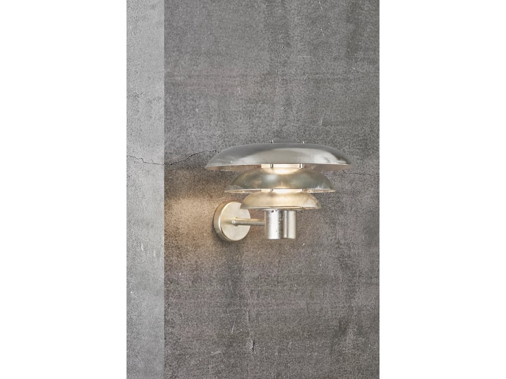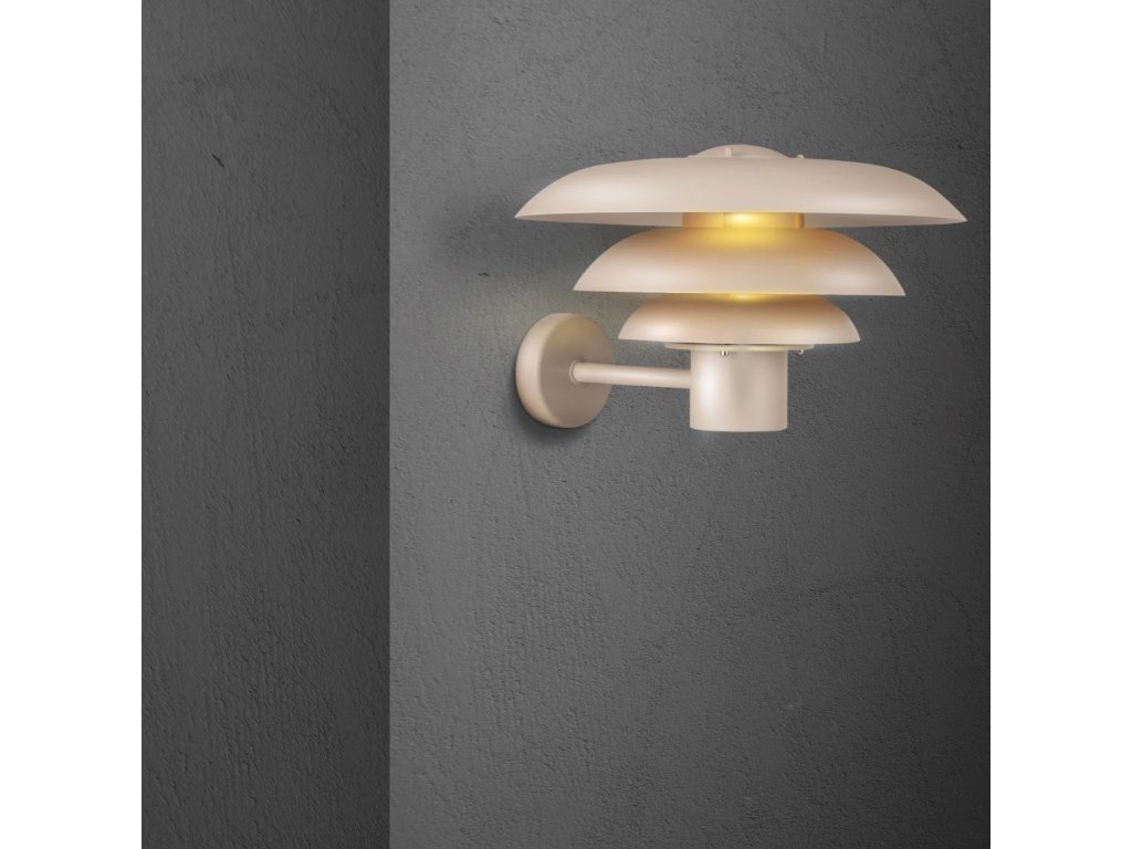 Štýlové vonkajšie nástenné svietidlo ideálne na osvetlenie moderných terás či okolia domov. Kombinácia základne a lampovej hlavy so širokými kruhovými prvkami zaisťuje jedinečný vzhľad. Žiarovka je ukrytá v mliečnom plastovom tienidle, ktoré poskytuje mäkké a neoslňujúce svetlo. Vďaka vyššej ochrane IP54 je svietidlo odolné voči nepriaznivým poveternostným podmienkam, čo zaručuje jeho dlhú životnosť. Ponúkame rôzne veľkosti a prevedenia, pričom si môžete vybrať žiarovku podľa svojich potrieb. Menší model je kompatibilný s päticou E27.