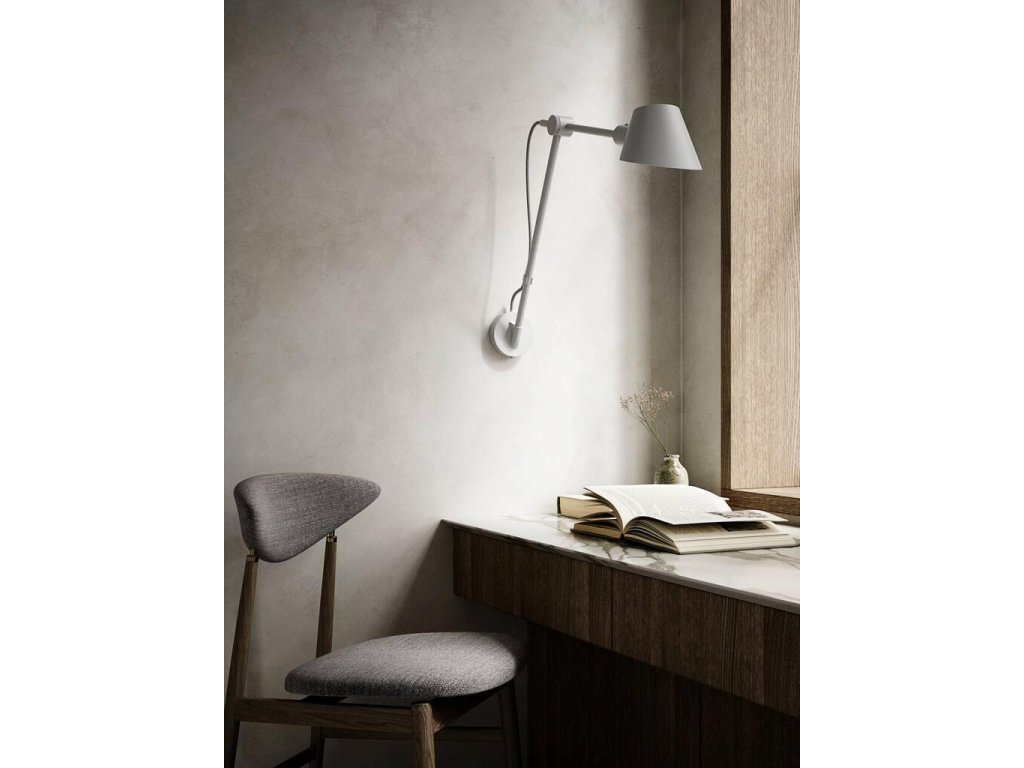 Nástenná lampa STAY, navrhnutá dizajnérkou Máriou Berntsen, spája funkčnosť s eleganciou. Jej kónické tienidlo a flexibilný kĺb umožňujú jednoduché nastavenie smeru svetla podľa vašich potrieb. Vďaka jednoduchým líniám a farebným variantom v čiernej alebo šedej farbe ľahko zapadne do moderných obývacích izieb alebo spální. K dokonalému využitiu svietidla nezabudnite vybrať vhodnú žiarovku s päticou E27, ktorú taktiež nájdete v našej ponuke.