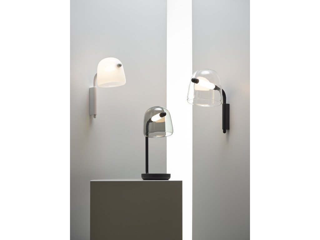 Séria Mona je založená na koncepte prenikavých foriem. Svetelný zdroj odvážne prekračuje dostatočný objem hladkého ručne fúkaného skla a odhaľuje vzrušujúce napätie, ktoré je tomuto designu vlastné. Podstata kolekcie však spočíva v jej netradičnej konštrukcii a rafinovanej kombinácii materiálov. Celá rodina Mona bola technologicky vylepšená inovatívnymi konektormi a nahradením drevených komponentov kovovými. Nástenný variant je stmievateľný pomocou integrovaného stmievača v spodnej časti kovového svietidla. Ponúka sa v 3 variantoch chromatickosti 2700K, 4000k a 5000K.