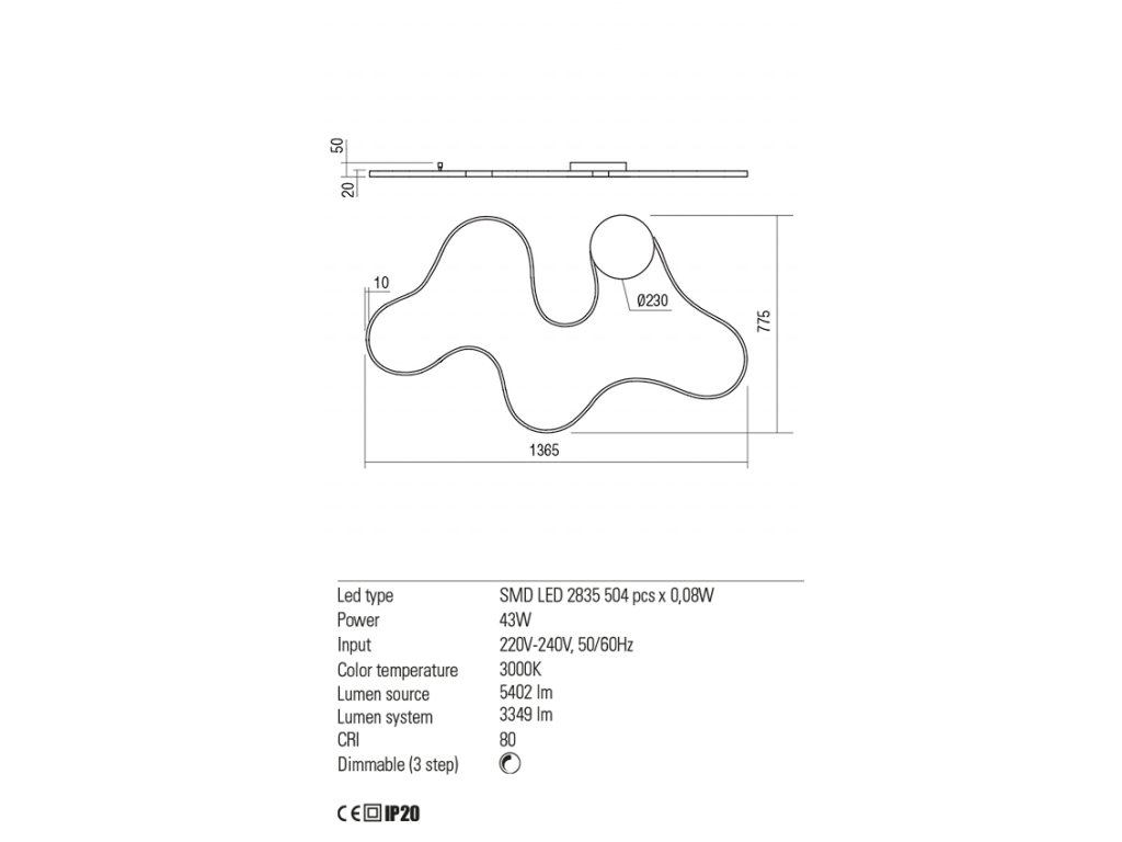 Nástenná LED lampa Estoril, d.137cm - VÝPREDAJ