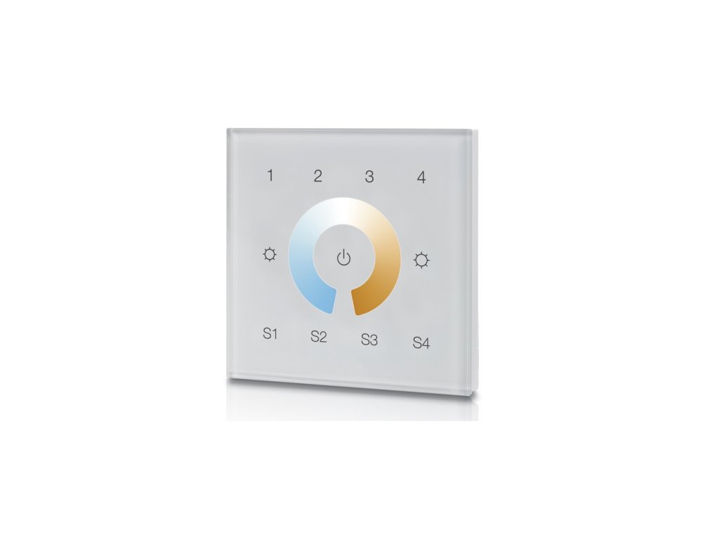 Nástenné diaľkové ovládanie so 4 okruhmi a zmenou teploty farby pre ZigBee 3.0 svietidlá. Montáž do KU68 krabice s napájaním na 230V.