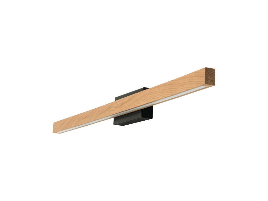 Moderné nástenné svietidlo & AQUA VIVA ktorého hlava je vyrobená z dubového dreva, ktorá je usadená na kovovom čiernom podstavci.