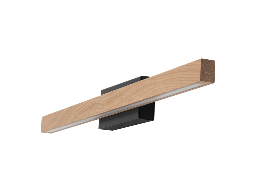Moderné nástenné svietidlo & AQUA VIVA ktorého hlava je vyrobená z dubového dreva, ktorá je usadená na kovovom čiernom podstavci.