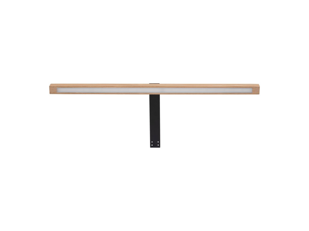 Moderné nástenné svietidlo AQUA VIVA ktorého hlava je vyrobená z dubového dreva, ktorá je usadená na štíhlom čiernom ramenami.