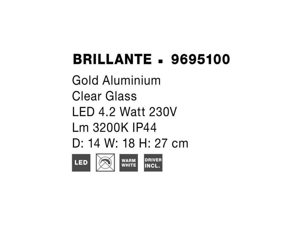 Nástenné LED svietidlo BRILLANTE zlatý hliník a akryl 4.2W 3200K IP44
