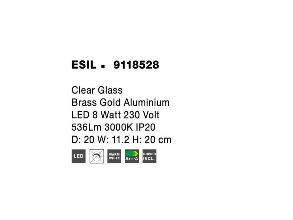 Nástenné LED svietidlo ESIL číre sklo mosadzný zlatý hliník 8W 3000K